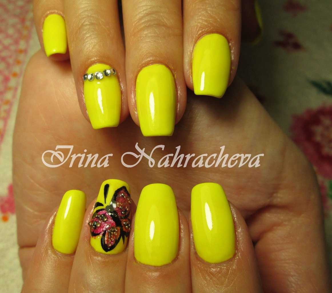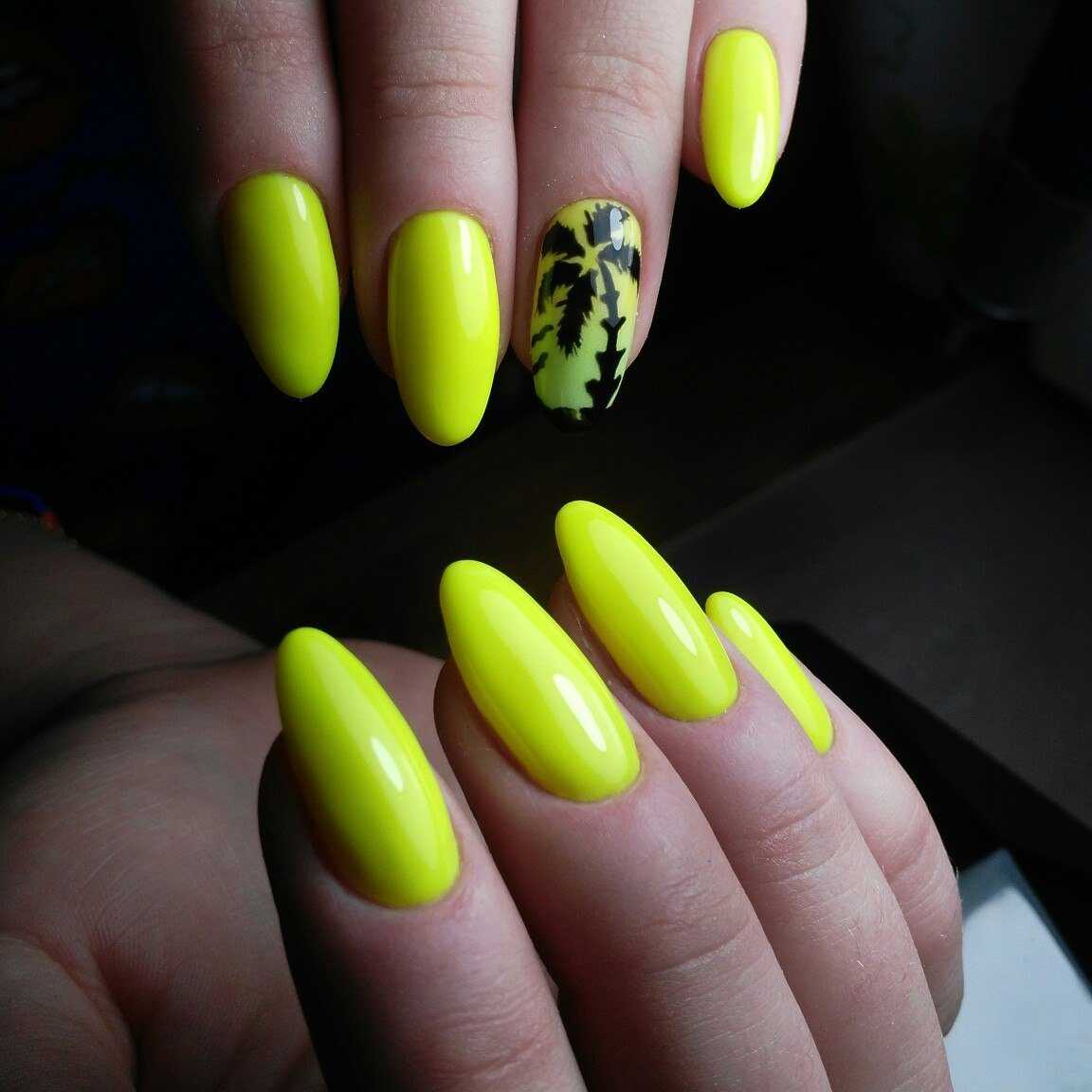 Яркие и нестандартные варианты однотонного маникюра – выбор молодых девушек, которые хотят максимально привлечь внимание к своей персоне. К тому же летняя погода и обилие природных красок подсказывает девушкам, что должно быть изображено на их ноготках