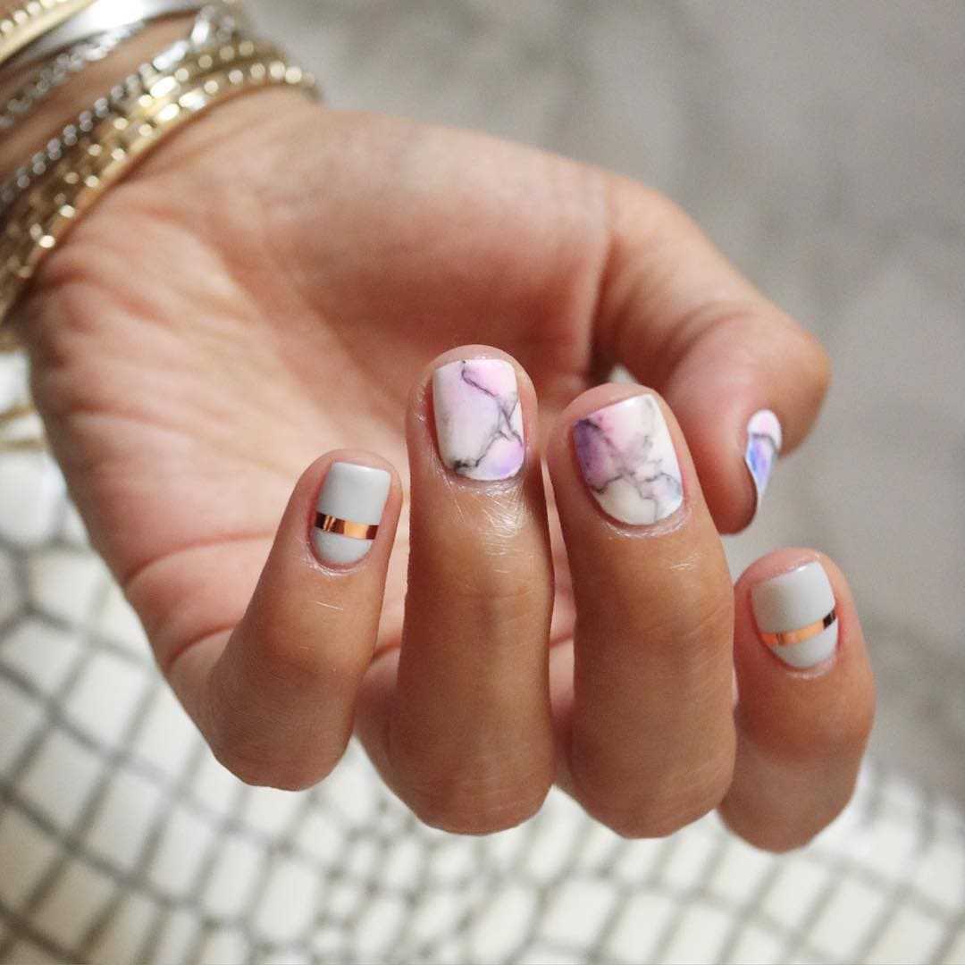 Мраморный маникюр стал основой для развития нового направления. Девушки вправе выбирать текстуры под разные натуральные камни. Теперь удается создавать имитацию других разновидностей камней.