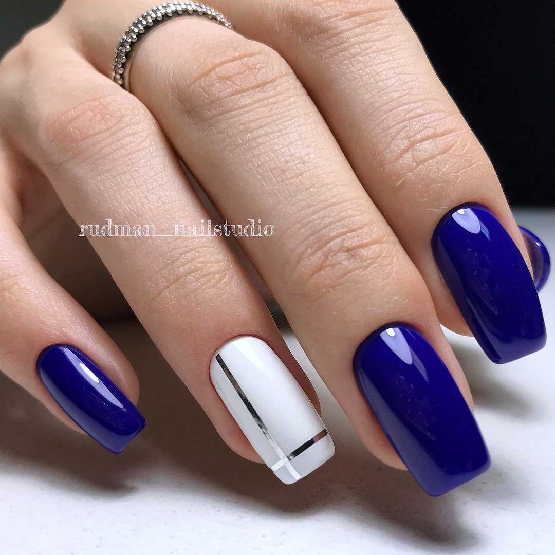 Синий дизайн можно охарактеризовать, как яркий, необычный и особенный. Ассоциируется с морской темой, зимней, космической и фэнтези. По этим причинам наиболее подходящий сезон для синего маникюра – конечно, зима. Дизайн в синем цвете можно дополнить блестящим нейл-артом, с блестками, выбирать лаки в стиле металлик или глиттер.