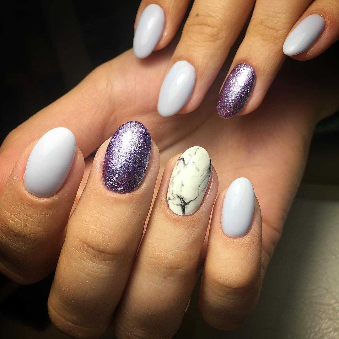 В дизайне мраморного маникюра считается приемлемым сочетание разных цветов, наоборот, разнообразие оттенков осуществляет уникальность и неповторимость владелицы данного стиля. Отмечу, мрамор выполняется и как на 1-ом ногте, так и на всех, не вызывает чувства перебора и тем более вульгарности.