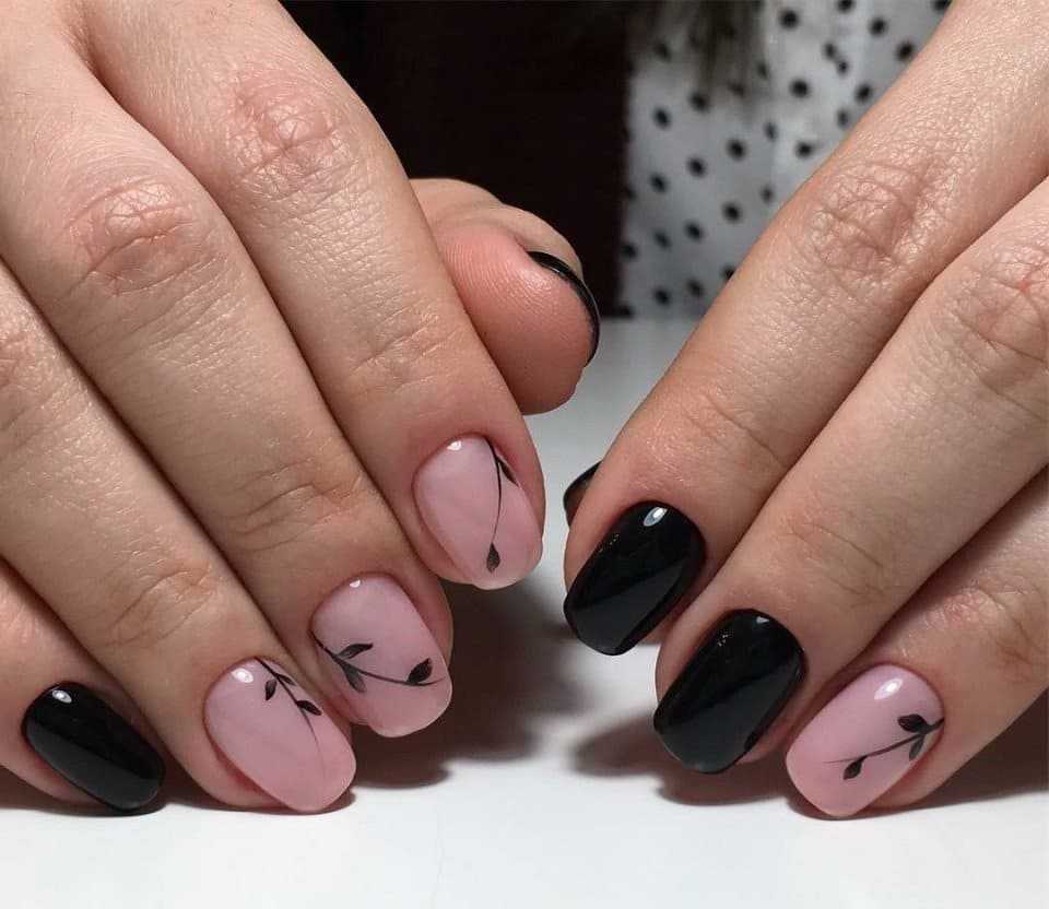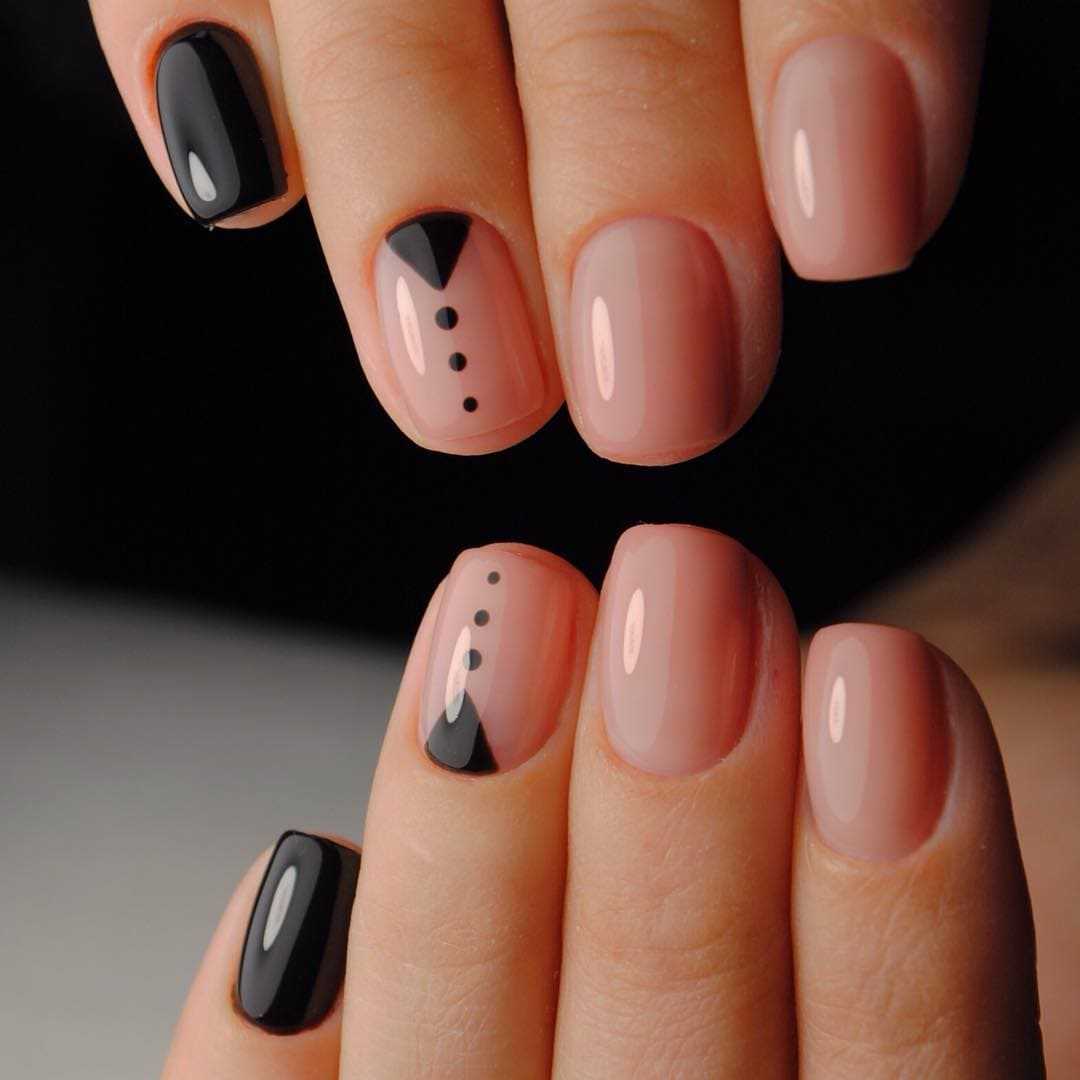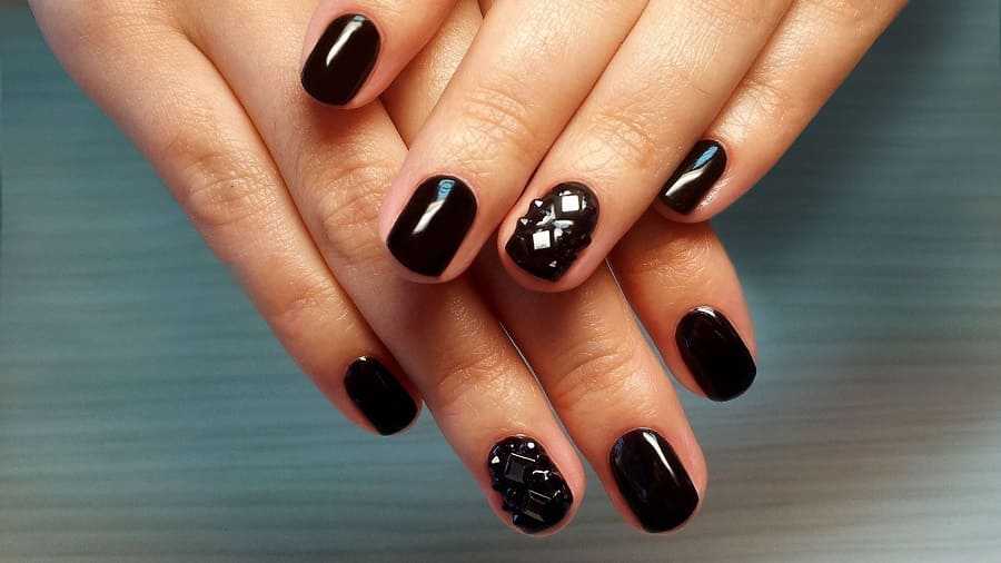 Особо элегантно выглядит черный дизайн с декором из фольги или втирки, или же дизайн в стиле фен шуй — когда один из ноготков украшен зеркальным дизайном.
