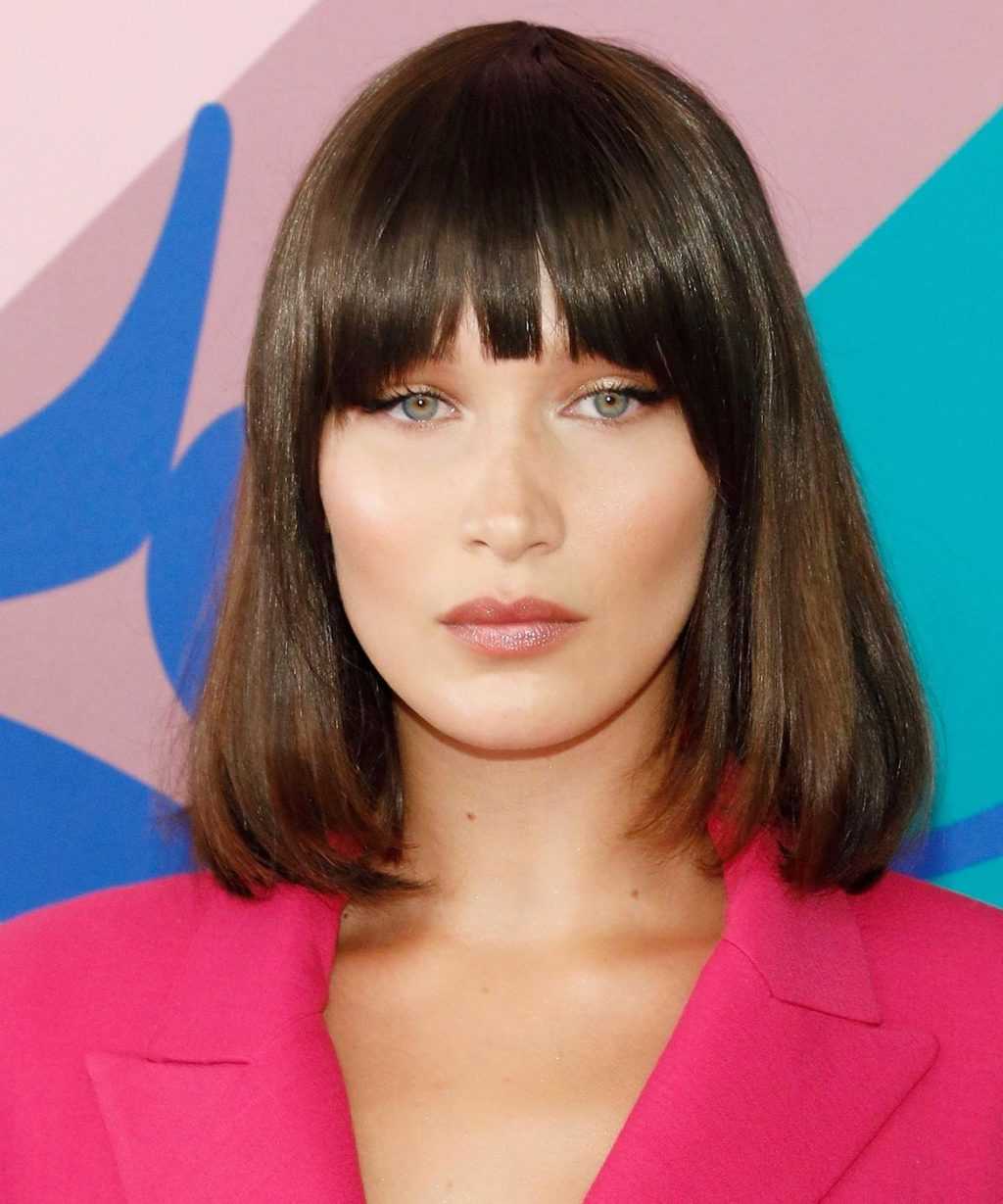 Челка немного выше бровей делает лицо сильным и более выразительным. Данный вариант идеально подходит женщинам с квадратной и круглой формой лица. Такая длина способна откорректировать форму лица.