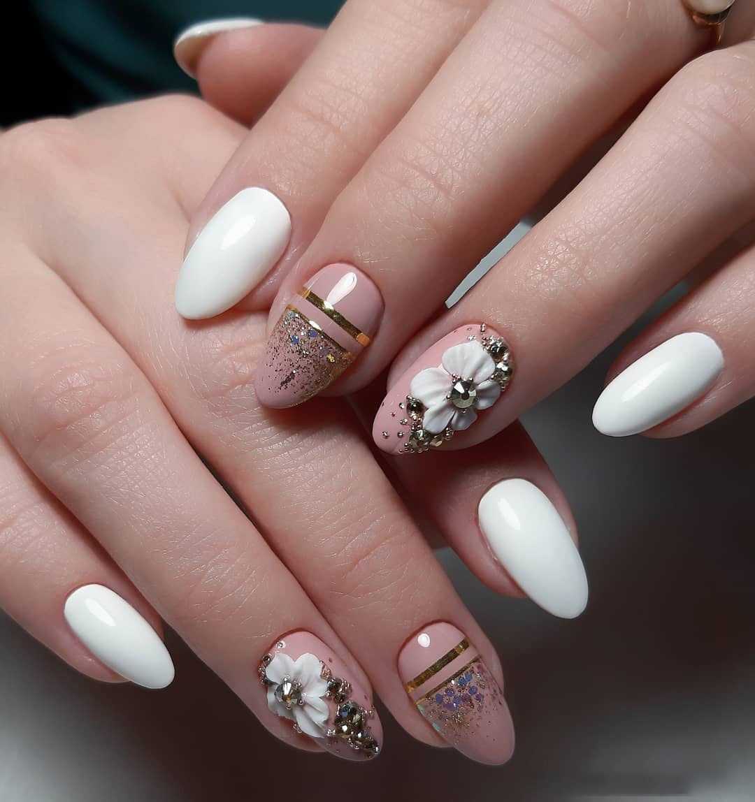Практически любая форма таких ногтей удлиняет пальцы, делая кисть изящнее и тоньше. Но если нужно сделать пальцы максимально “стройными”, помни, что лучший вариант — миндаль и полу-пики.