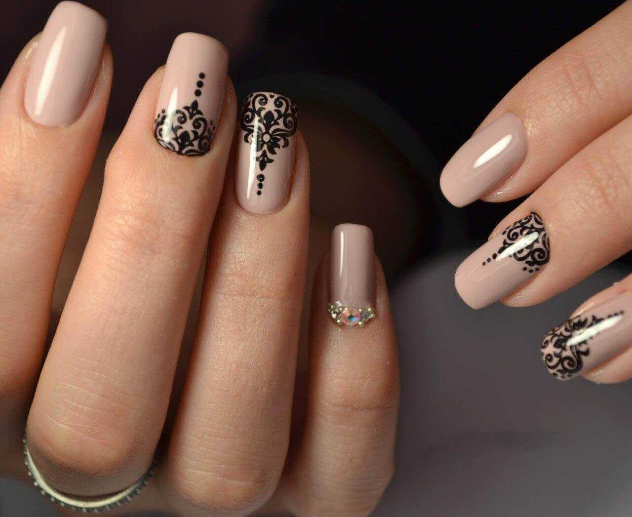 Используйте декор по минимуму. Красиво выглядят кружевные несложные узоры, нанесённые на один или два ногтя. Если вы хотите сделать на ноготках орнамент, то используйте вертикальные линии. Очень красиво смотрится монохромный дизайн с небольшим добавлением страз. Такой простой, изысканный маникюр придаст вашим ноготкам особого шарма.