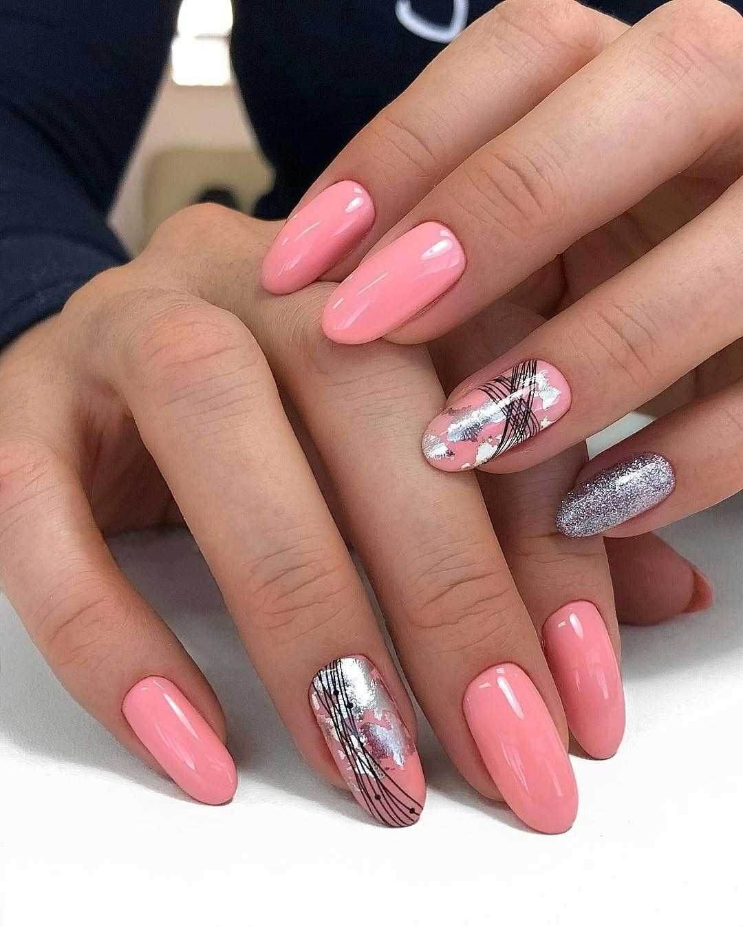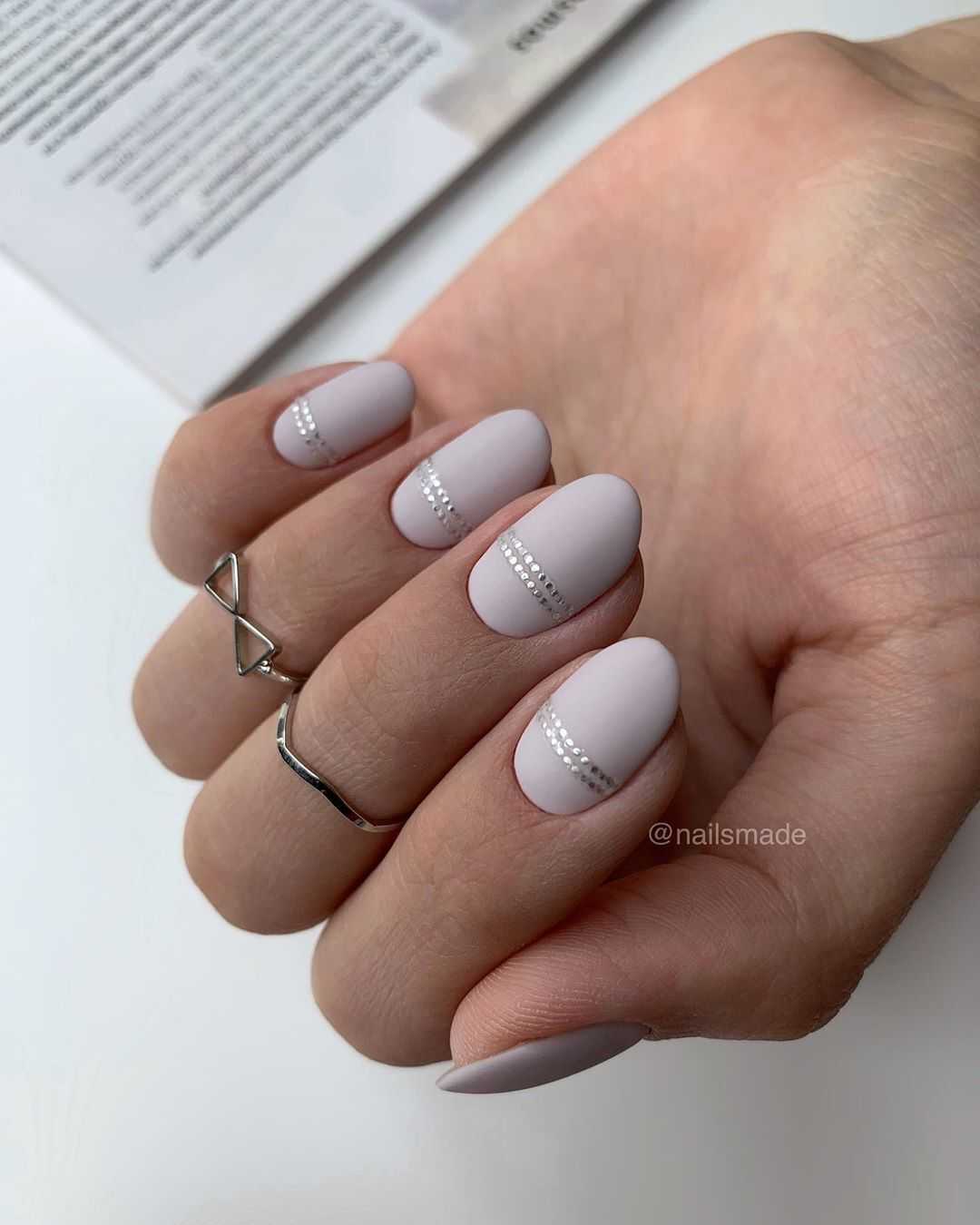Этот тандем далеко не новинка в нейл-индустрии, но из сезона в сезон он пользуется большой популярностью. А все потому, что маникюр в серо-розовых тонах получается осень спокойным, самодостаточным, нежным и приятным для восприятия, особенно если добавить к нему немного серебристого блеска.