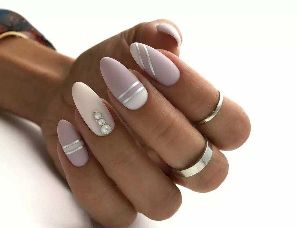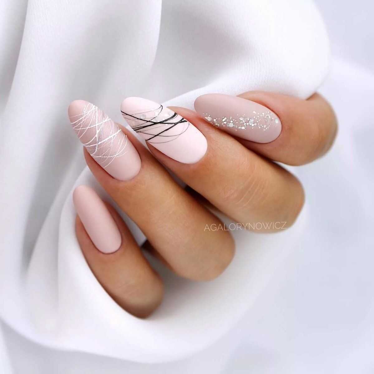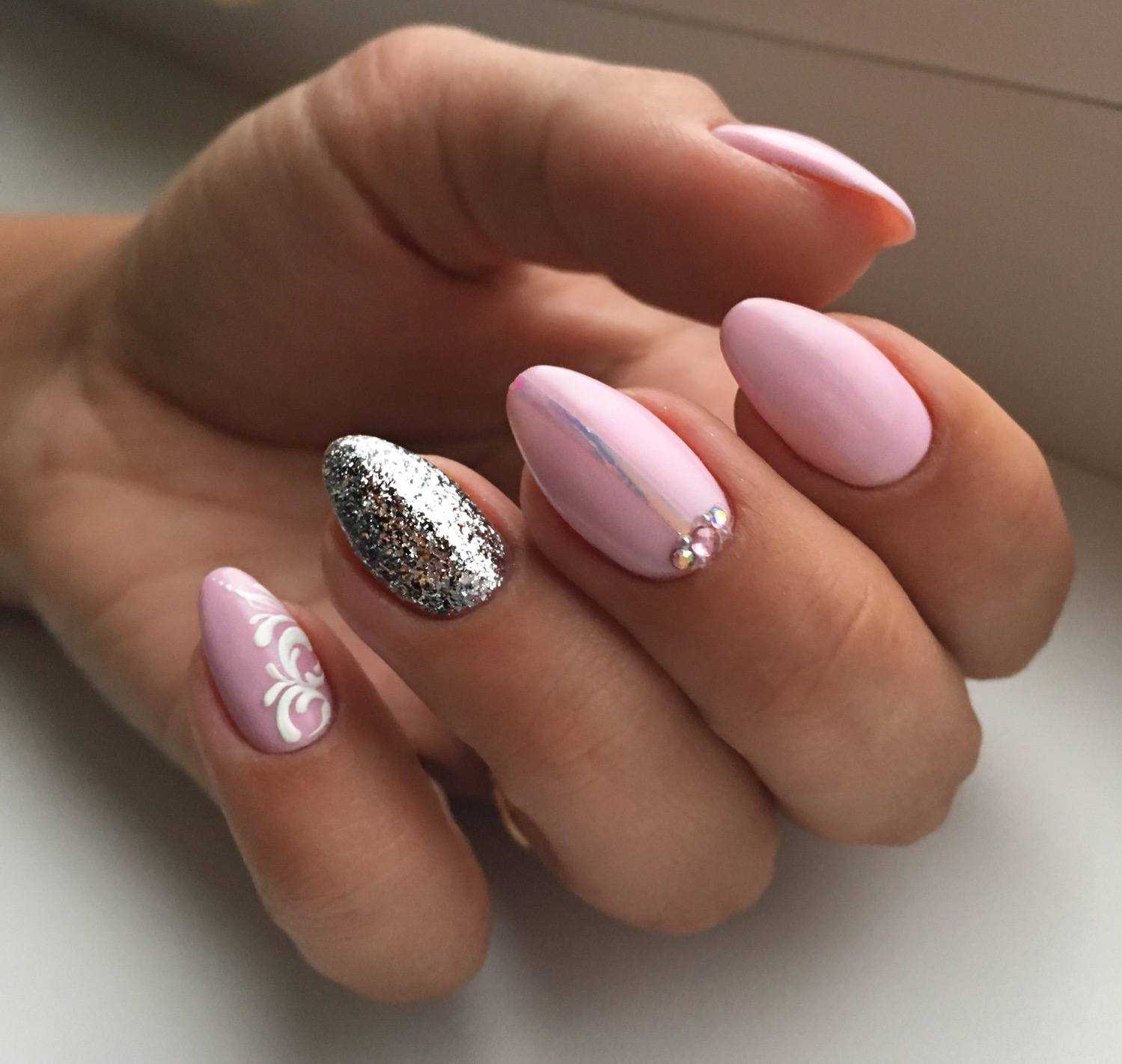Нежные тона в сочетании техники глиттер — никогда не выйдут из моды. Такой дизайн используют как при создании классического маникюра, так и маникюра в стиле гротеск. Он идеален для вечеринки и прекрасно сочетается с любой одеждой в обычные дни. Хорошо будет смотреться глиттер как дополнительный декор, так и для создания основного маникюра. Не выходят из моды и стразы! На нежных тонких ручках они выглядят особенно изысканно. Цель — гармоничный результат. Сверкающие камни, блестки, стразы всё будет «к лицу» нежному, но неброскому маникюру. Не теряет популярности графический рисунок, а именно полоски на поверхности ногтя. Тоненькая полоска на однотонном монохромном покрытии придает изюминку общему виду, делая маникюр стильным.