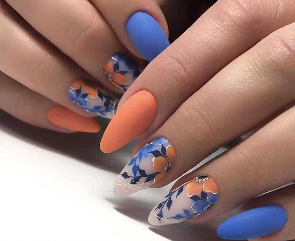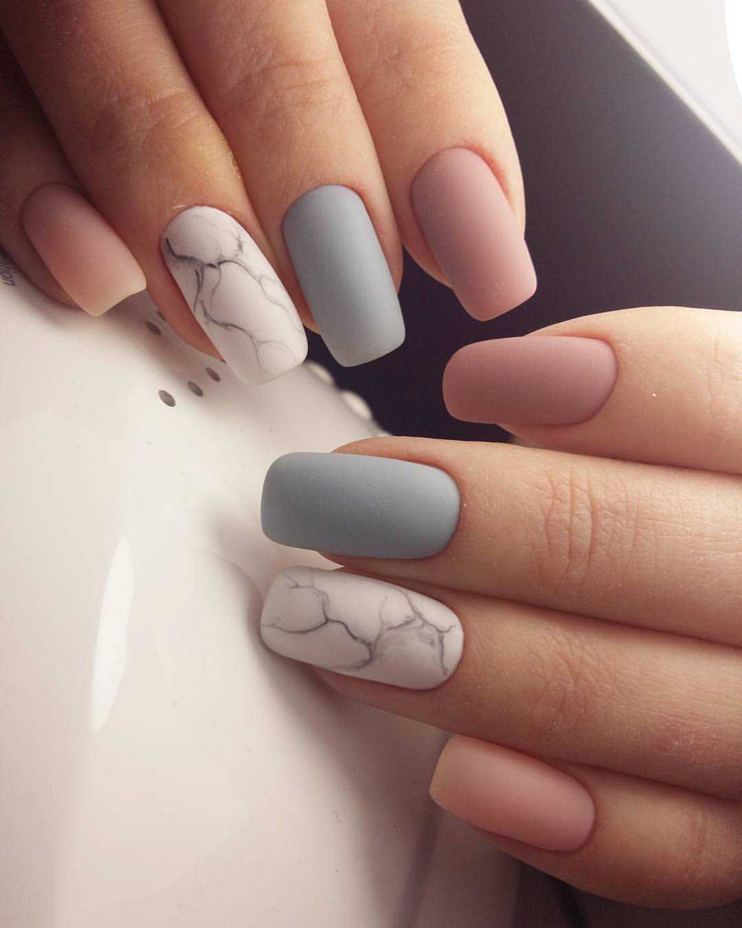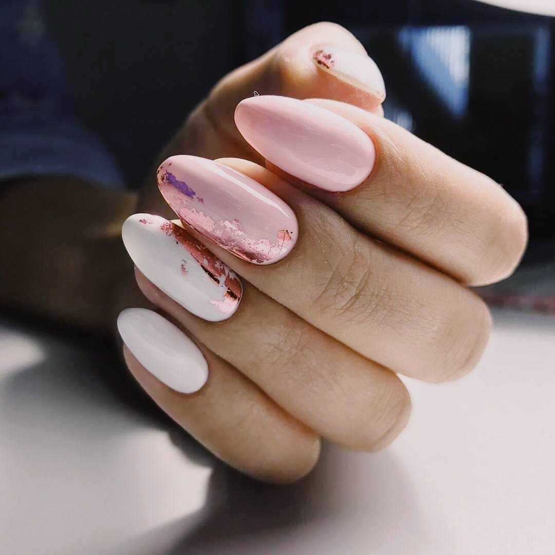 Это одно из самых трендовых сочетаний цветов в маникюре 2020 года. В результате нейл-арт получается очень нежным и одновременно веселым. Данный тандем идеально подойдет для теплого времени года. Причем комбинировать таким образом можно как пастельные оттенки, так и более яркие. И не забудьте дополнить этот маникюр дополнительными женственными элементами декора, например, рисунками или аккуратными наклейками в виде цветов.