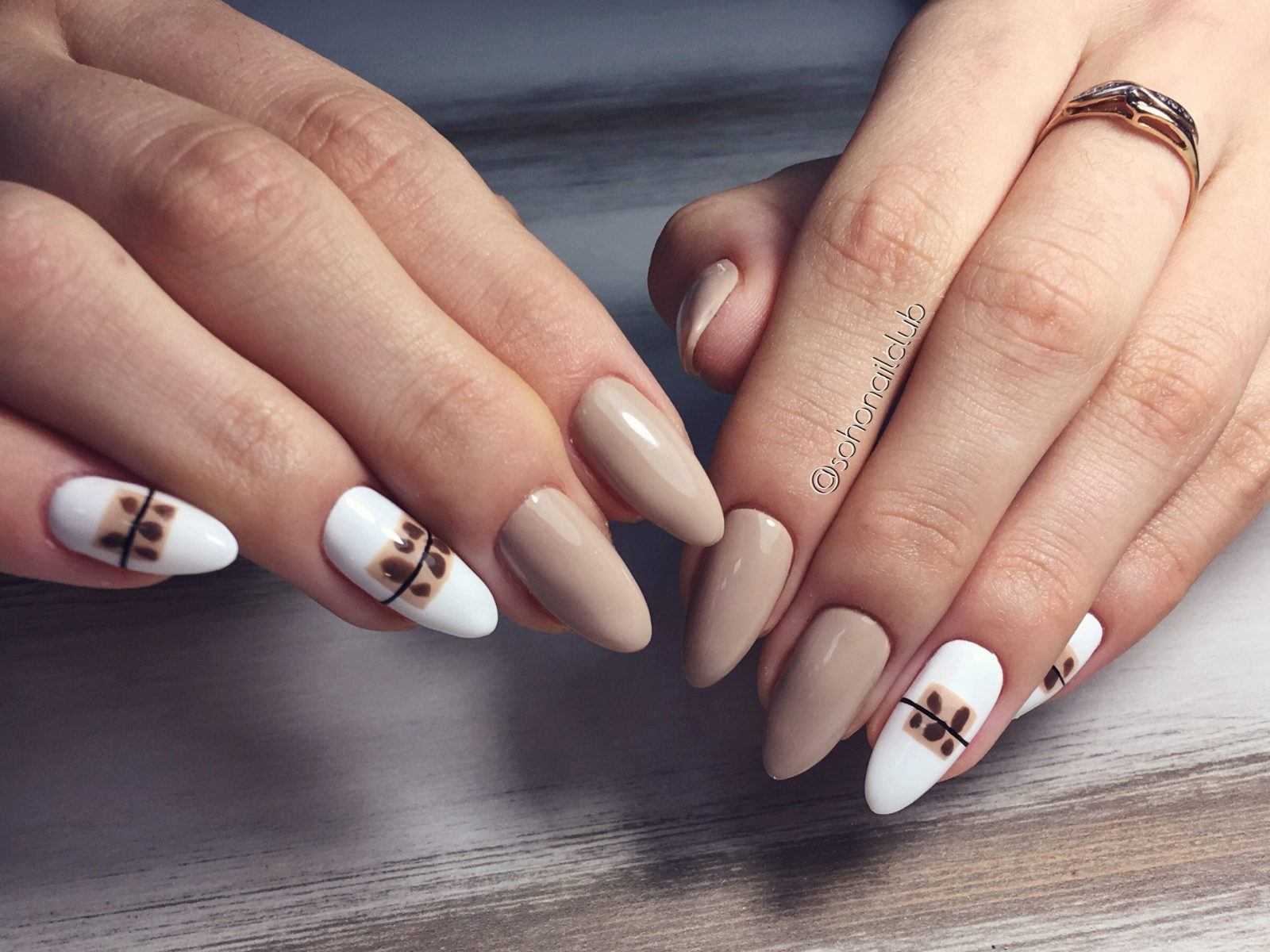 Молодежным школьным и студенческим ручкам удачно подойдет короткий в нюдовых расцветках вариант. Утонченно смотрится, если выделить несколько ноготков с рисунком перышка, кружевного принта, с использованием камешков или полосок фольги.