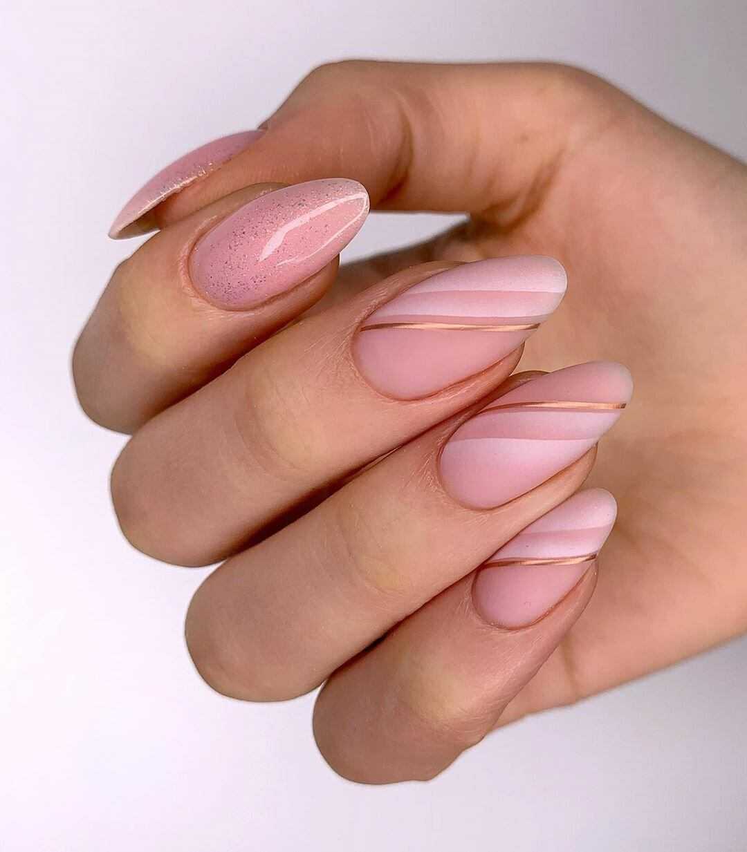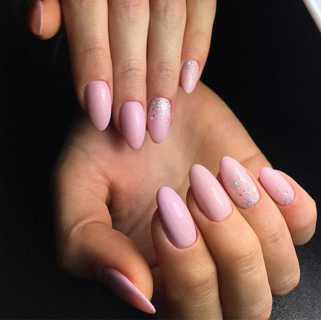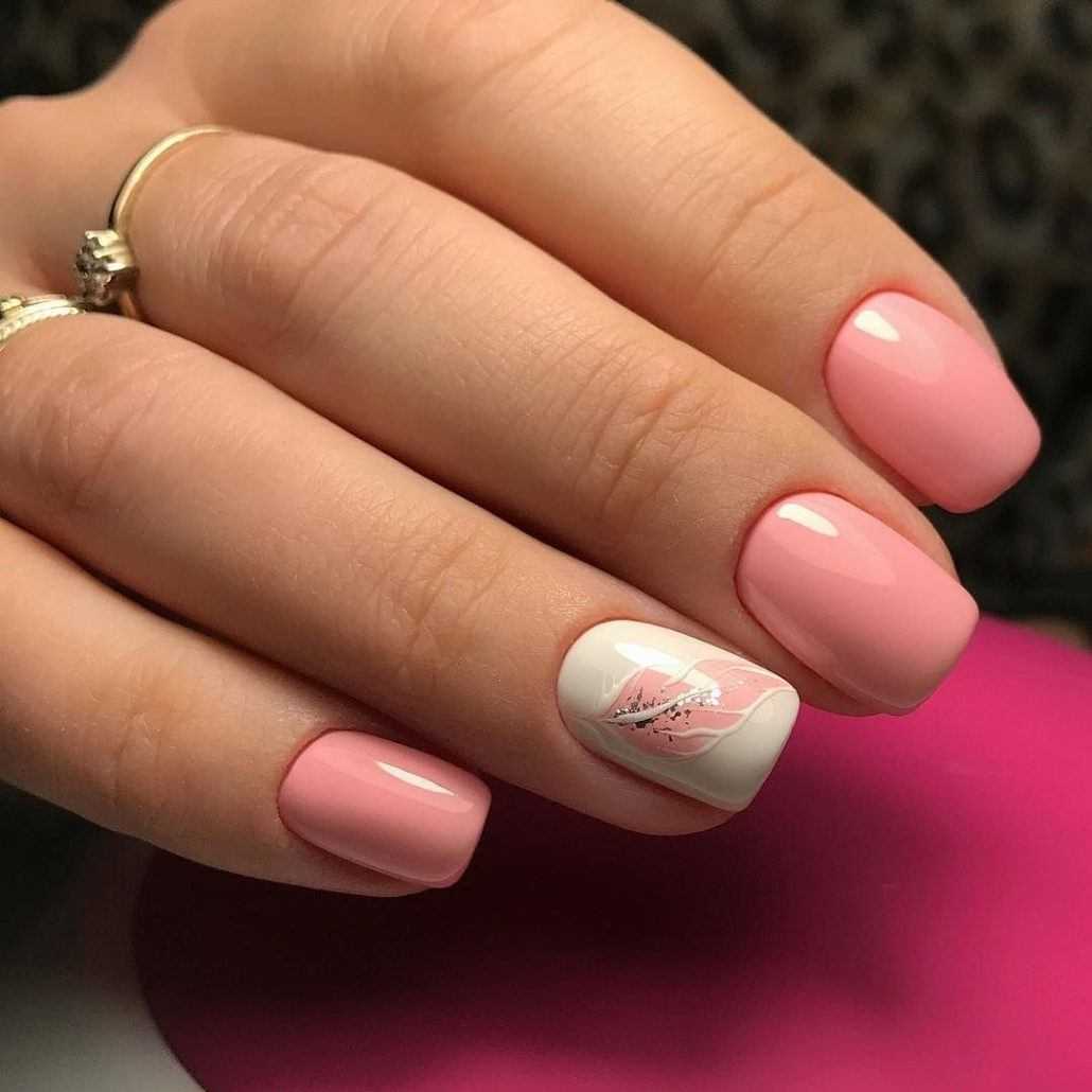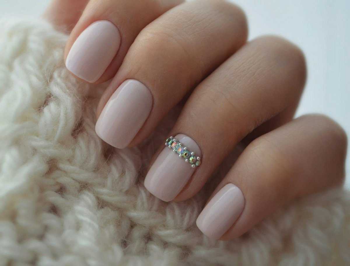 Представительницы медицинских или иных, избегающих привлечения внимания к своим рукам, профессий могут выбрать однотонный вариант в пыльно-розовом цвете либо ноготь указательного/безымянного пальца акцентировать — сделать на тон темнее либо декорировать.