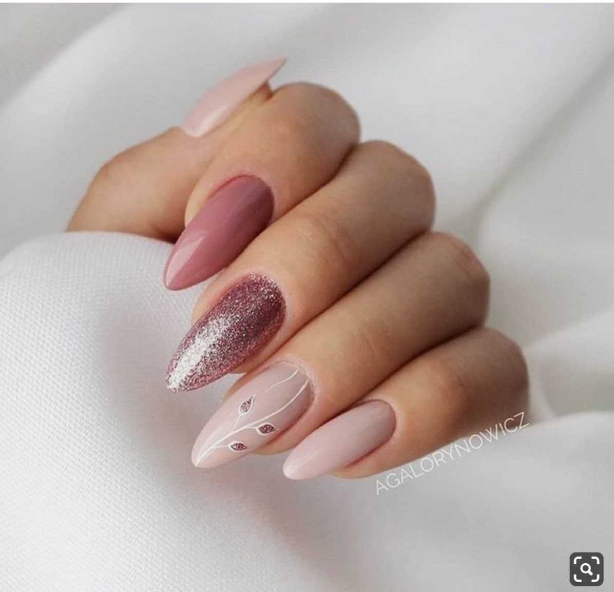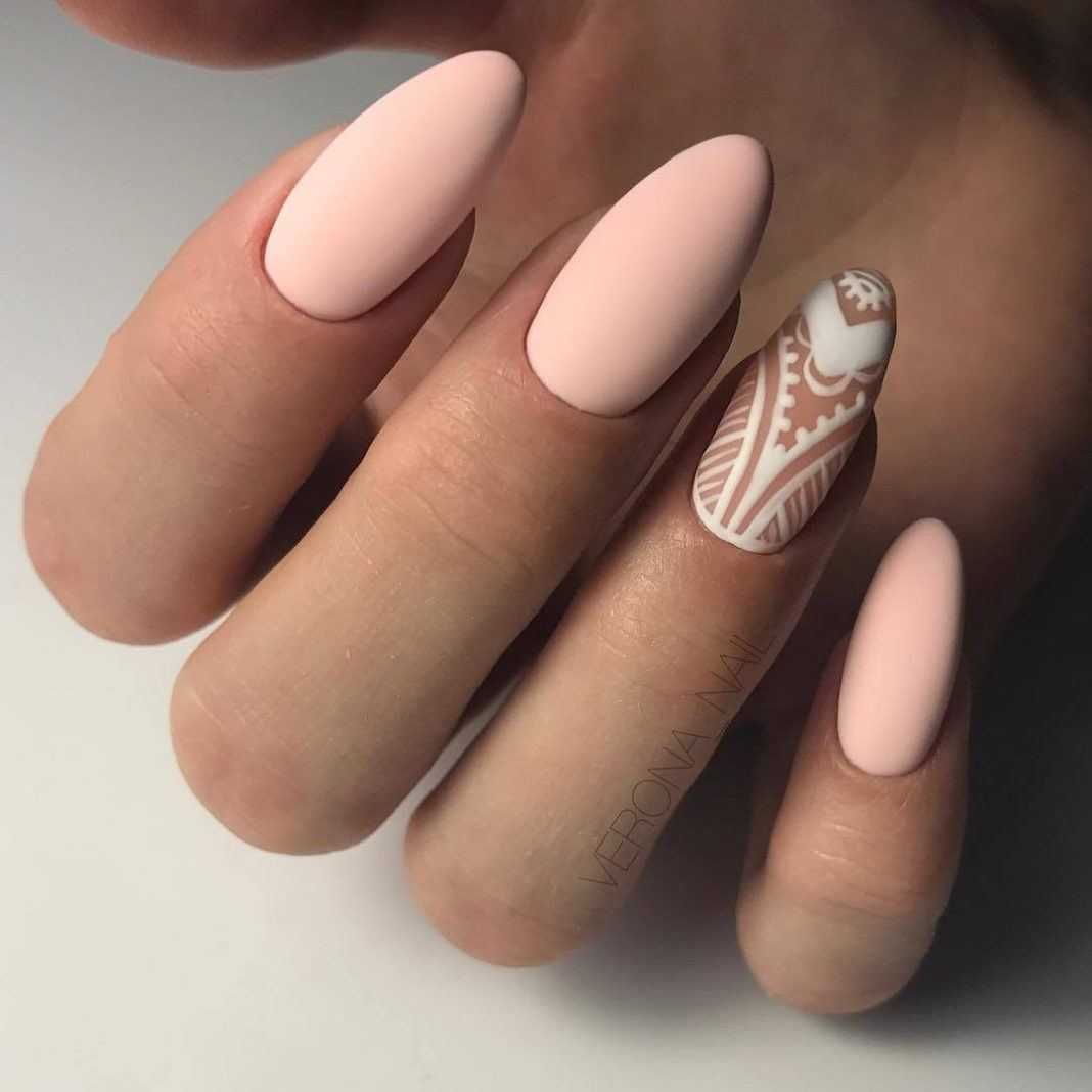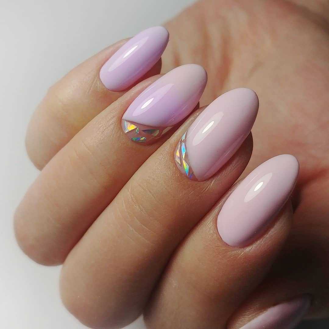 Представительницы медицинских или иных, избегающих привлечения внимания к своим рукам, профессий могут выбрать однотонный вариант в пыльно-розовом цвете либо ноготь указательного/безымянного пальца акцентировать — сделать на тон темнее либо декорировать.
