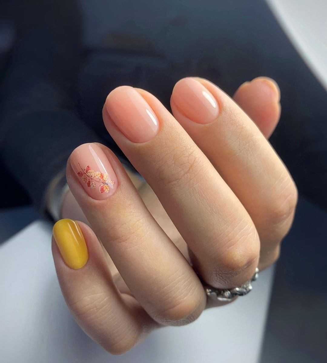 1. Покрыть несколько ногтей молочно-желтым цветом;