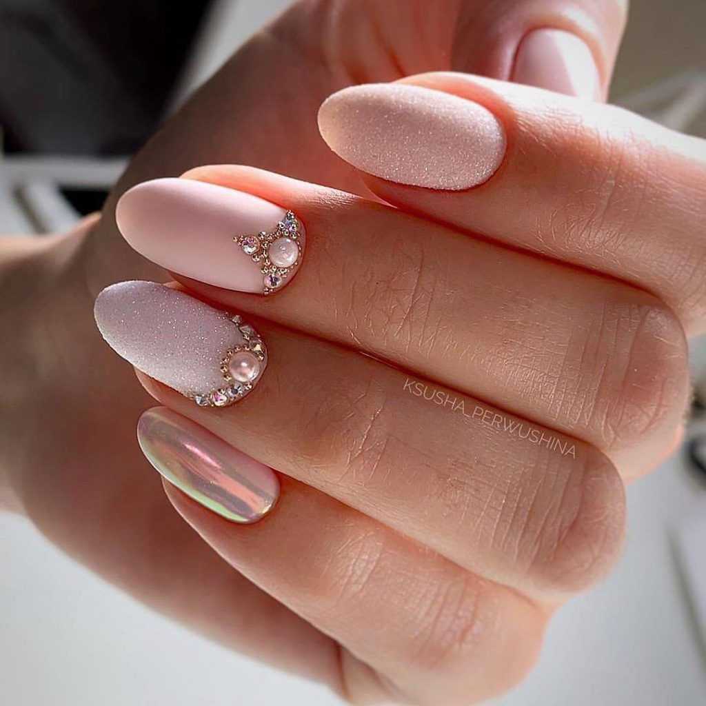 Изысканный маникюр с нежными ногтями идеален для любого образа. Он будет уместен как в школе, так и в офисе, при использовании декора можно создать праздничный лук. Кроме того, он отлично подойдет для невесты.