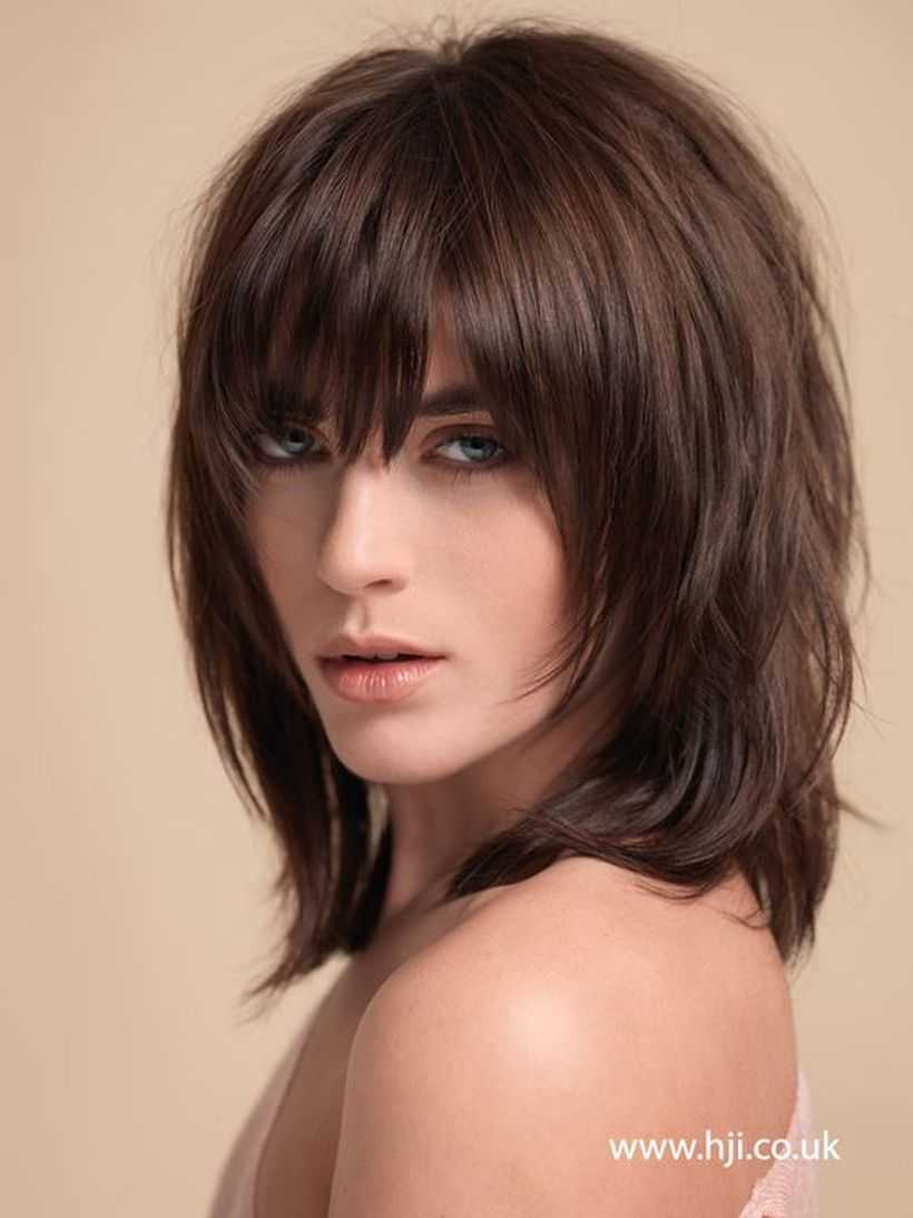 Вариантов каскада на средние волосы множество. Выбор зависит от овала лица, структуры и состояния волос. Самым актуальным вариантом для современных девушек считается каскад с прямой челкой. Такую стрижку могут позволить себе не все женщины, ведь она требует идеальное во всех отношениях лицо. Именно челка поможет скрыть или скорректировать недостатки лица и создать красивую прическу. Стрижка с прямой челкой прекрасно смотрится на обладательницах вытянутого лица. Густая прямая челка делает лицо визуально короче, скрывая морщины на лбу.