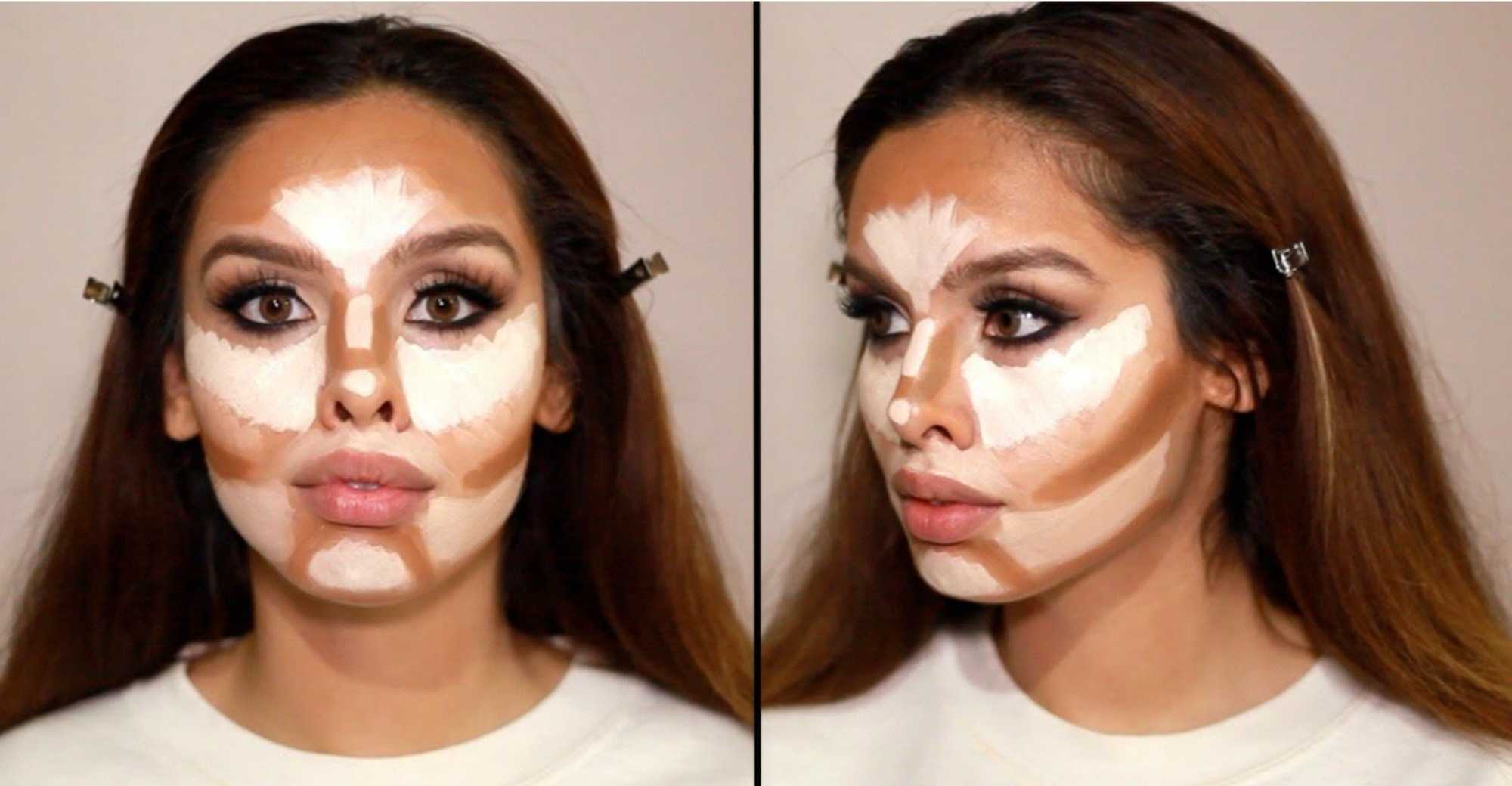При создании изысканных форм в макияже нужно наносить консилер темного цвета на нижнюю часть подбородка, центральную, верхнюю часть лба. Оставьте нетронутыми боковые стороны. Не ставьте акцента на подбородок, лоб. Аккуратно высветлите участки кожи под глазами, нижней губой.