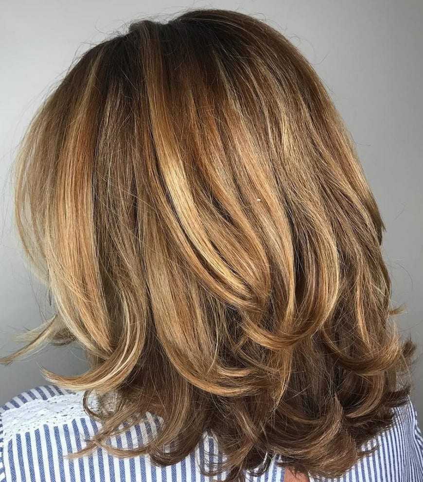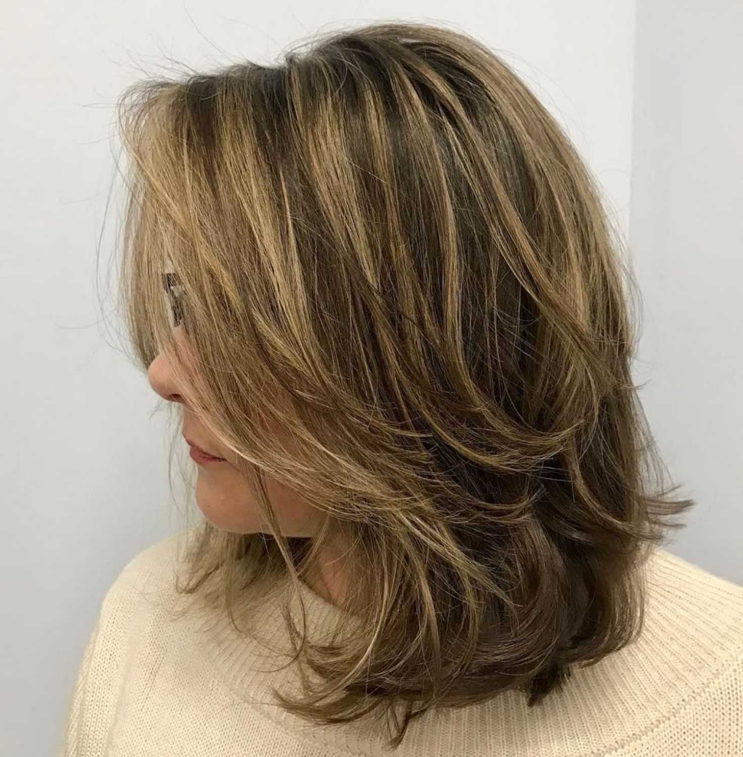 Градуированная стрижка длинных волос — оптимальный выбор для женщин средних лет. Это позволит вам оставаться такой же воздушной и живой, как и десятилетия назад, запросто визуально скинет пять лет и отвлечет от мелких недостатков внешности.