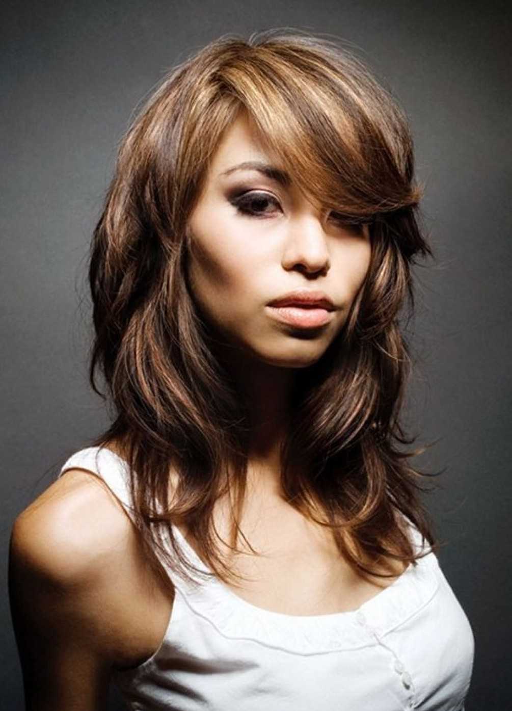Любая стрижка, например Многослойная или Каскад, которые скроют часть скул и наружных щек женщины, подойдут им в том случае, если у них круглое лицо. Челки нужно использовать для округлого лица — косые, рваные и любой асимметричной формы исполнения.