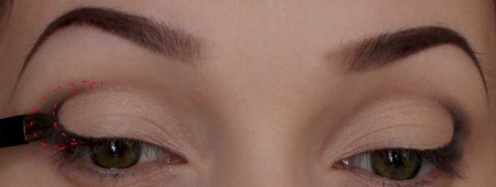 Более насыщенные оттенки наносятся на внешнюю часть века и тщательно растушевываются по линии диагонали с направлением вверх. При этом тени должны оказаться за пределами внешнего края глаза.