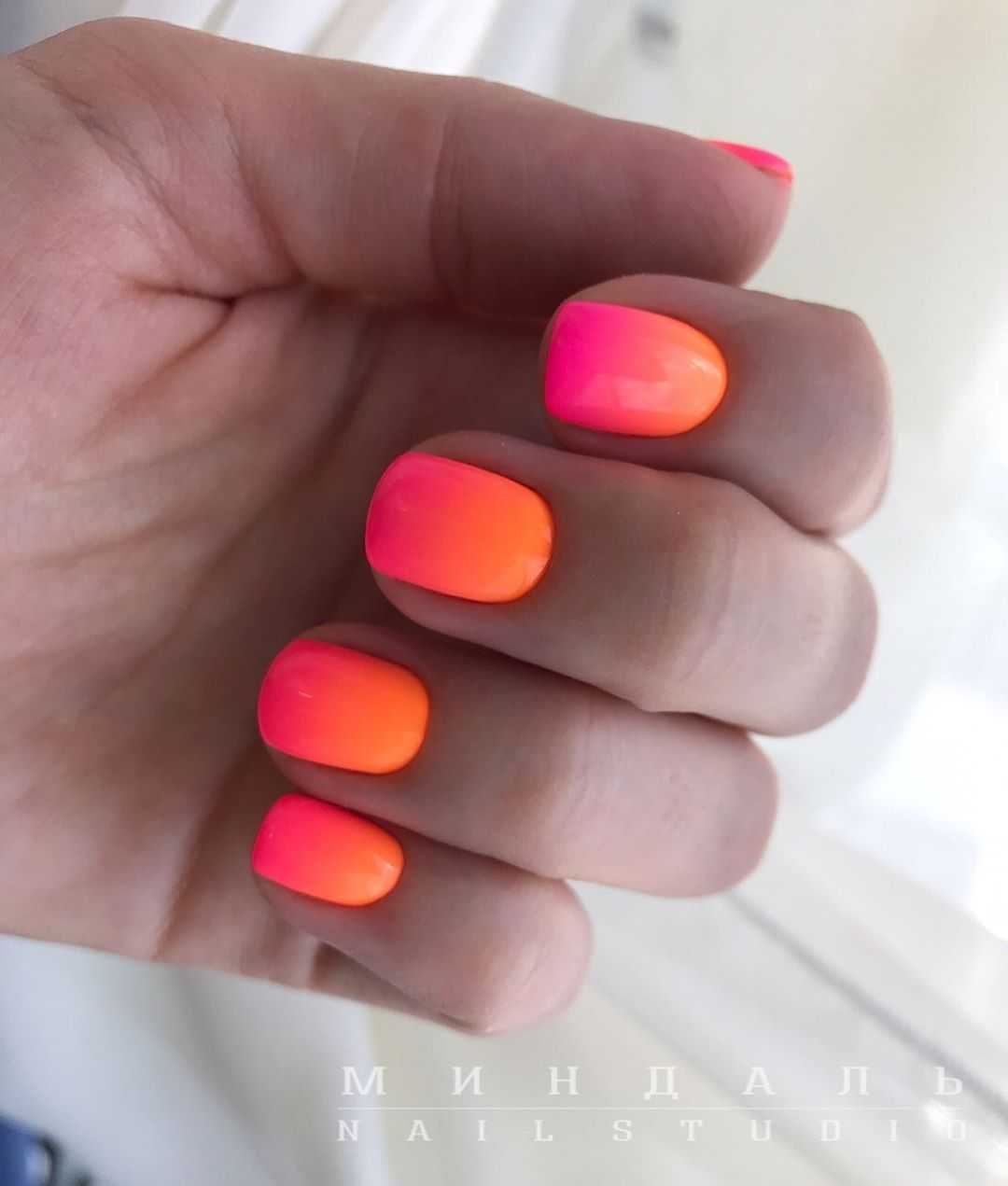 Технике создания маникюра омбре нет равных. Здесь очень красиво смешиваются два и более цвета, где линия слияния размыта. Обычно для создания омбре мастеру потребуется специальный аппарат аэрограф, но если ногти короткие, то он сможет воспользоваться и более доступными, ручными методами.