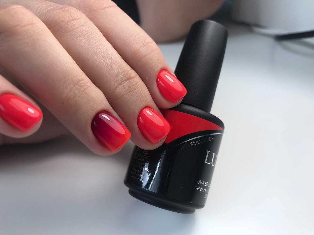 Обычно для этого подойдет кусочек поролона или специального материала, который позволяет отпечатывать цвет на ногтях и легко ее растирать. Поверх двух цветов рекомендуется наносить прозрачный лак, чтобы сделать их более блестящими. Сами цвета подбираются из серии максимально подходящих друг другу, либо подбирают максимально контрастные.