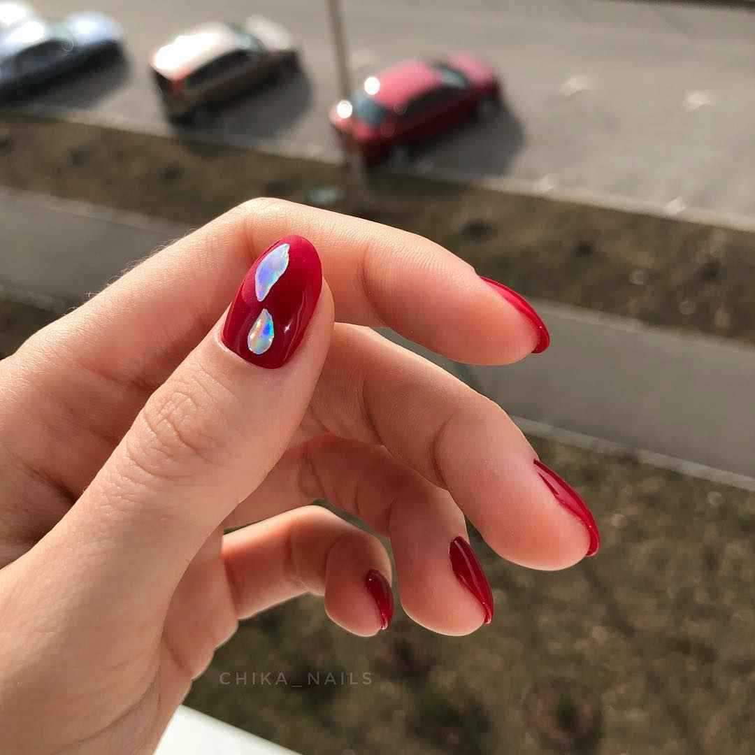 В зависимости от формы ногтя подбирается и текущий цвет гель-лака. В любом из случаев он будет очень хорош. Если есть выбор, то можно подобрать гель-лаки с шиммером в составе. Это заставит покрытие блестеть глубиной красивого цвета и света.