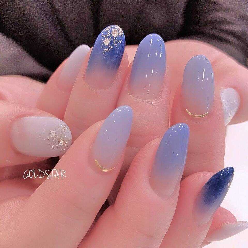 Базовый цвет для синего френча все-таки нюд. Этот цвет сам по себе яркий. Поэтому синий цвет ногтя лучше уравновесить более спокойными оттенками.