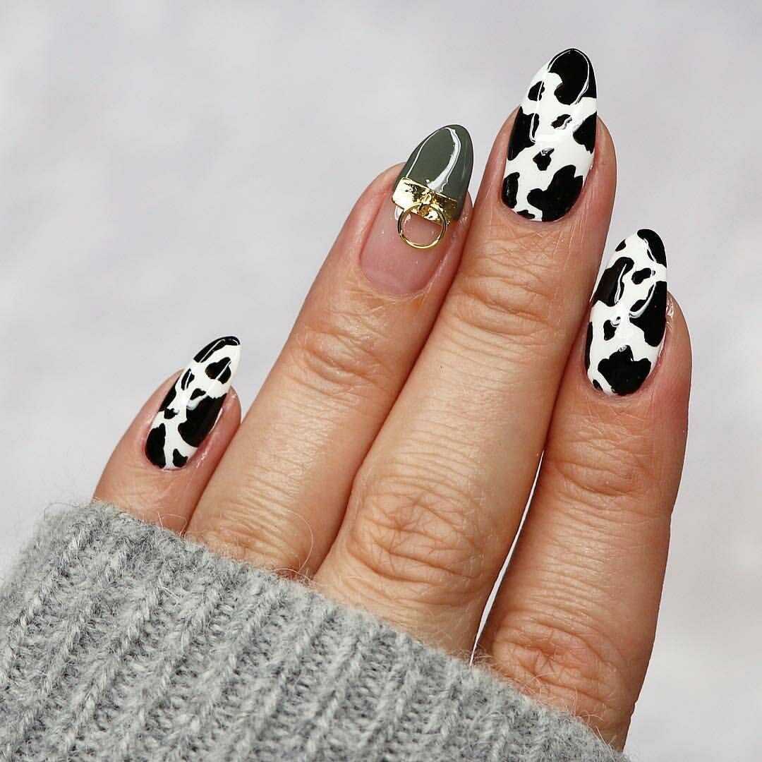 Если верить восточным легендам, правителем каждого года является одно из двенадцати тотемных животных, и роль повелителя 2021 года предназначена Быку. Дизайнеры не оставили данный факт без внимания, и успешно использовали эту возможность в модных идеях новогоднего маникюра. Всевозможные изображения с коровками, телятами или быками в оформлении дизайна ногтей в этом Новом году можно назвать мега трендовыми. А как можно обыграть это в маникюре мы расскажем далее.