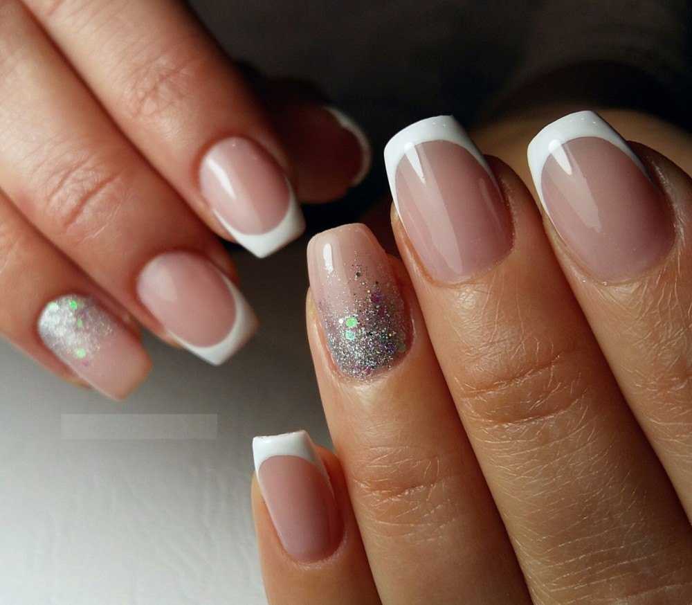 Нежный дизайн с глиттером – простой маникюр, который можно выполнить даже дома