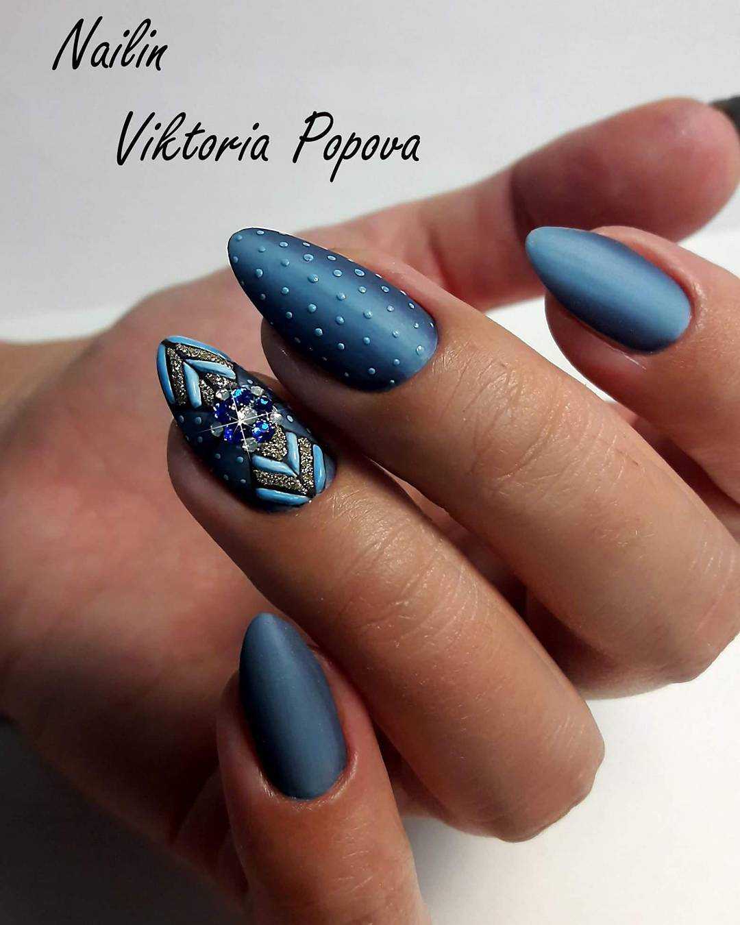 Стильный зимний маникюр в серо-синих тонах