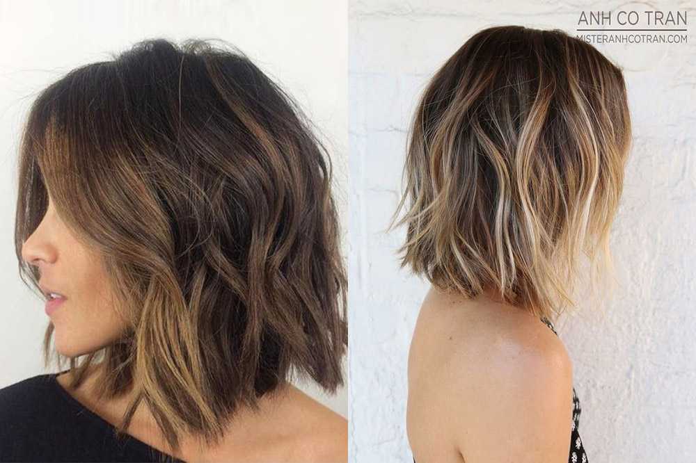 Если уж изменений все-таки хочется, то лучше для начала обратиться к техникам «Балаяж» или «Венецианское мелирование», которые предполагают окрашивание прядей не по всей голове, а только на нижней части шевелюры. В качестве первой попытки мелирования на темном каре большинства разновидностей отлично подойдет «Вуаль» из светлых прядок.