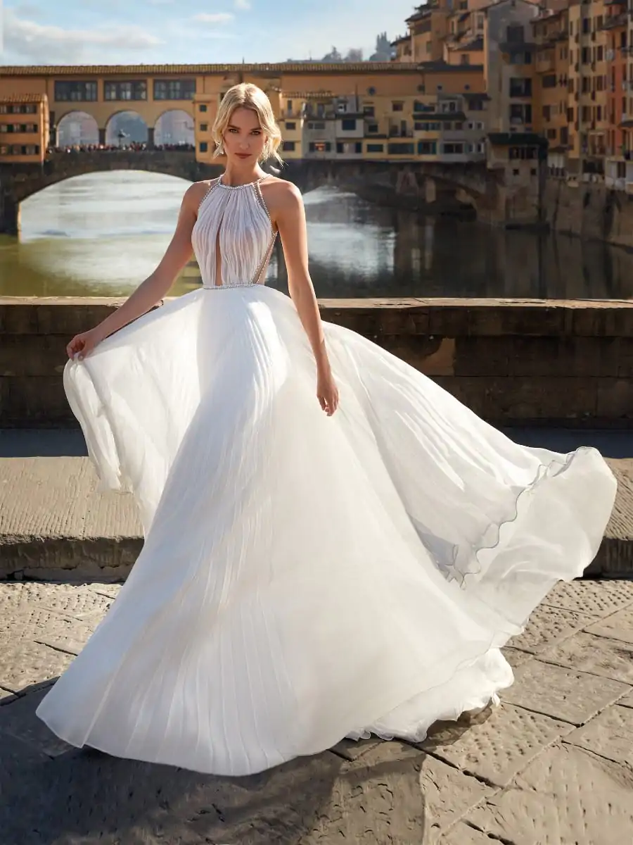 Теперь каждый магазин свадебных платьев может предложить своим милым клиенткам модели с воротником-хомутом, который подойдет девушке с любой фигурой, поэтому именно такой сексуальный вариант стал очень популярным.