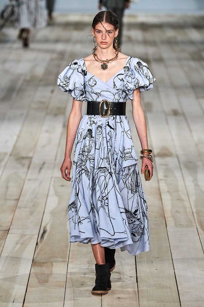 Цветочный принт и полоска занимают ведущие позиции в категории модных принтов весна-лето 2022. В тренде — платья длины миди и макси, V-образные вырезы, американская пройма и объемные рукава. Ориентир — коллекции Brock Collection, Gambattista Valli, Yasya Minochkina и Artem Klimchuk. Дизайнеры поощряют творческие полеты, презентуя стильные платья с изобилием мелких цветов и единичными вышитыми. Не менее прекрасно смотрятся платья в полоску. Нет, мы не говорим о классической морской тематике. Lisa Perry демонстрирует вариант с невероятно крупной полоской сдержанных тонов, Audra — игривое изделие с мелкой вертикальной и горизонтальной.