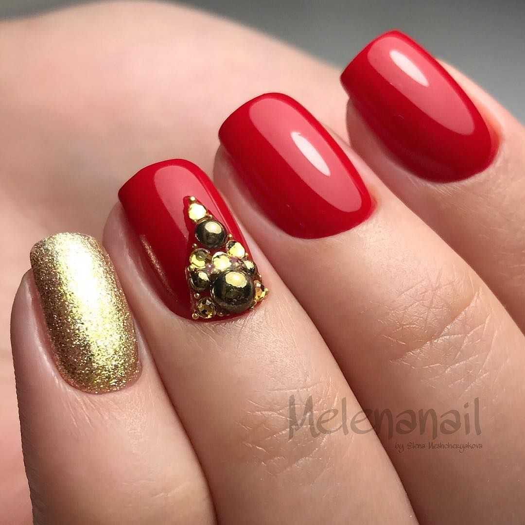 Красный маникюр с золотом и серебром: фото 2022-2023