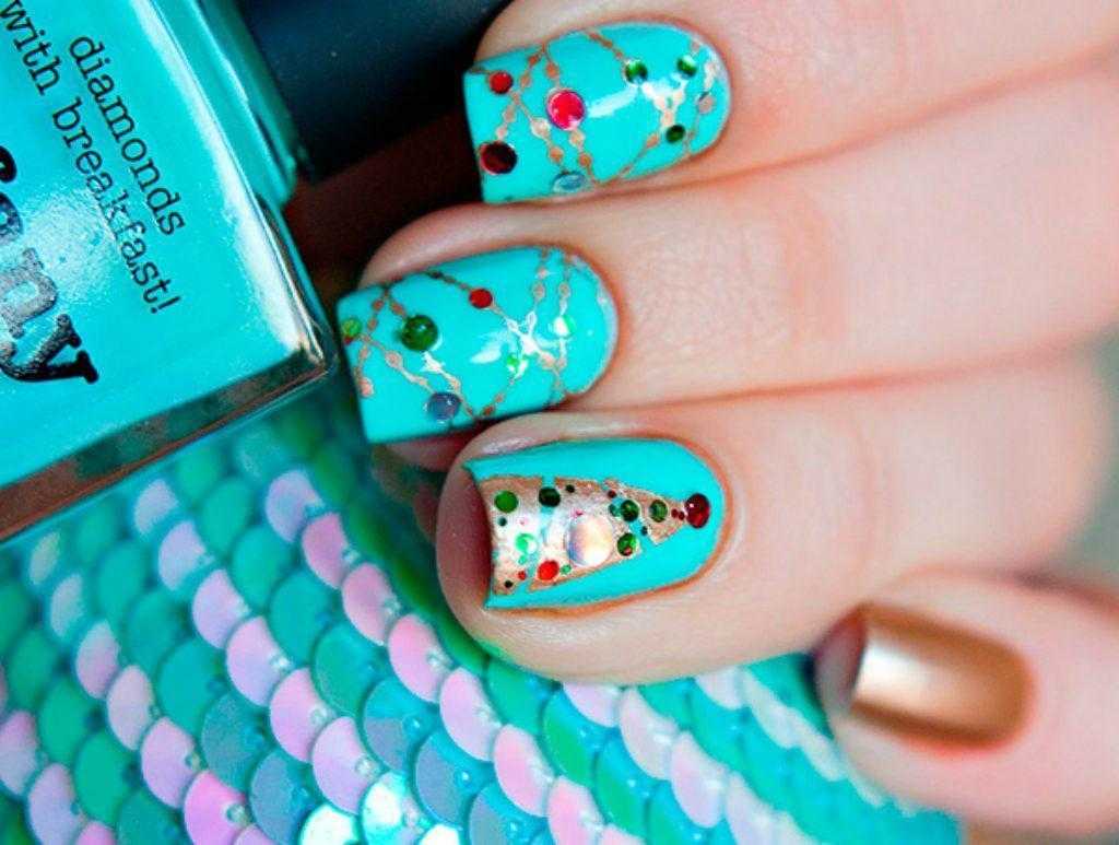 Чтобы усилить праздничность дизайна, используйте как дополнение стразы в тон или же геометрические рисунки.