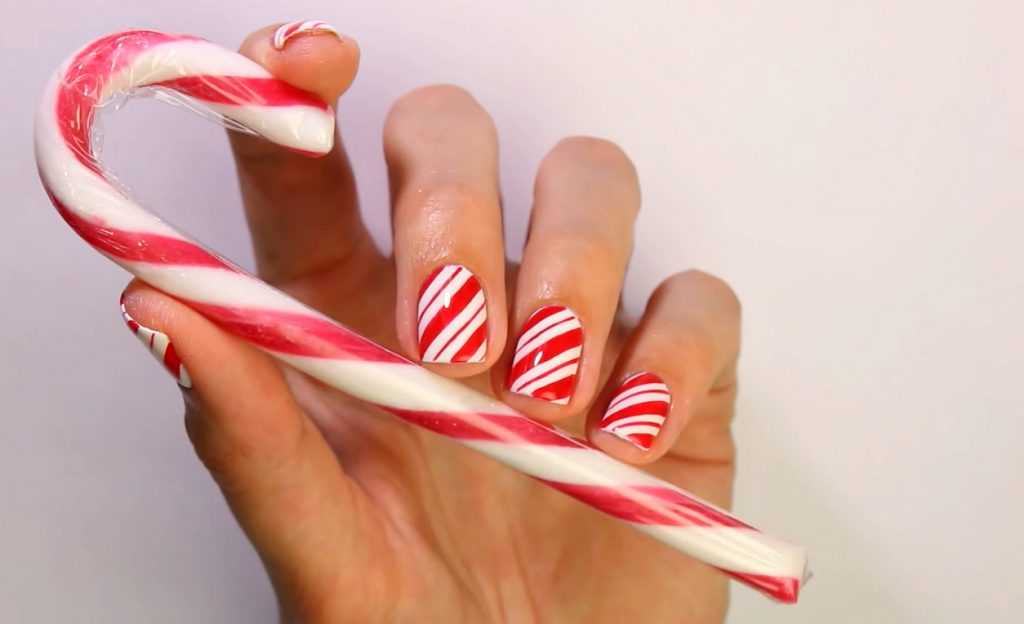 Несложный, но красивый новогодний дизайн ногтей просто воспроизвести в домашних условиях. На Западе вкусные бело-красные леденцы уже давно стали символом Рождества и Нового Года.
