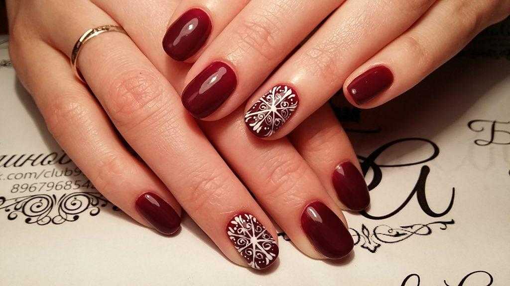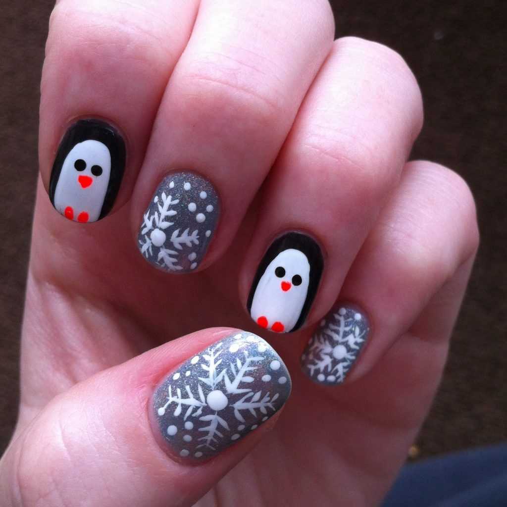 Новогодние мотивы в эту волшебную ночь будут очень уместны. Снежинки, елочки, шарики и прочие зимние атрибуты украсят маникюр и усилят праздничную атмосферу.