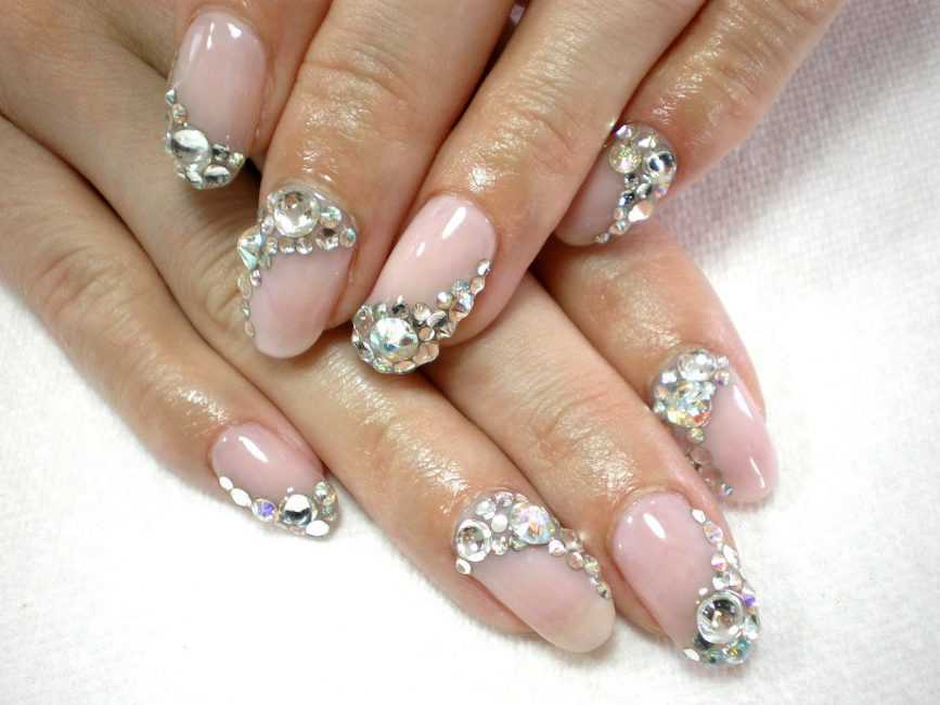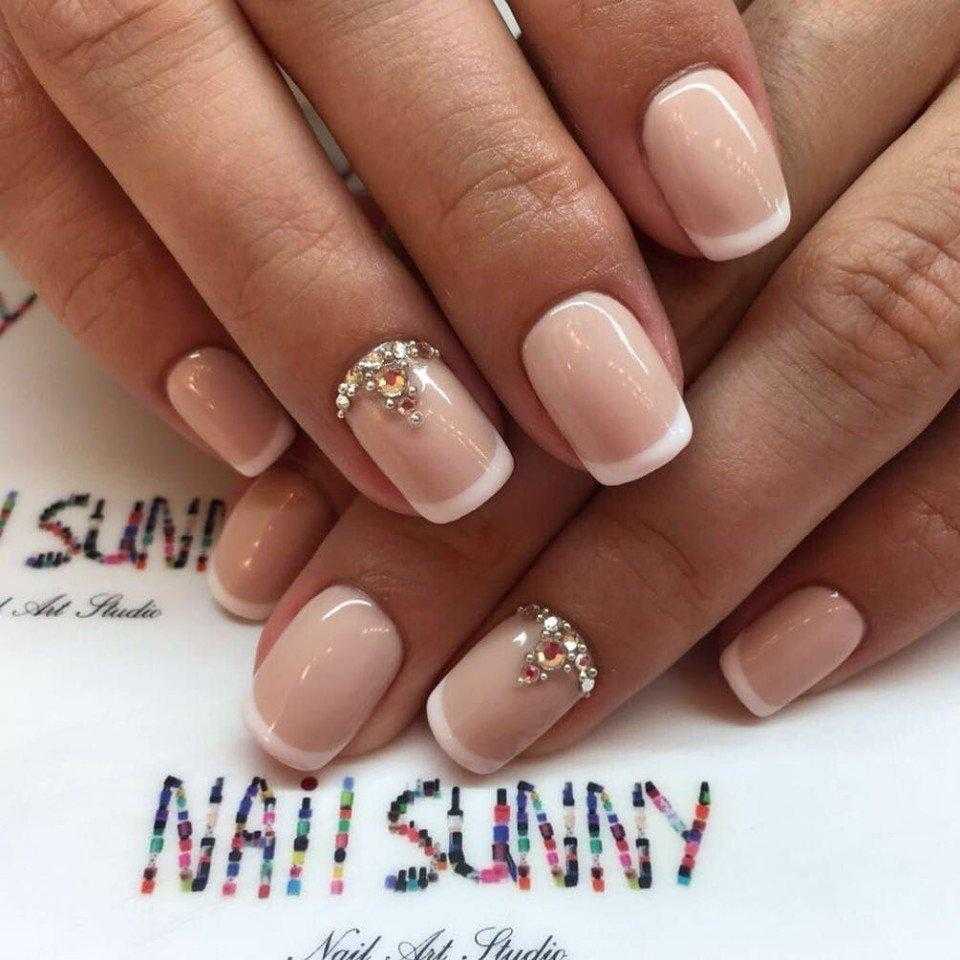 Французский маникюр давно стал классикой, но кто помешает нам оживить его декором из страз или блесток?