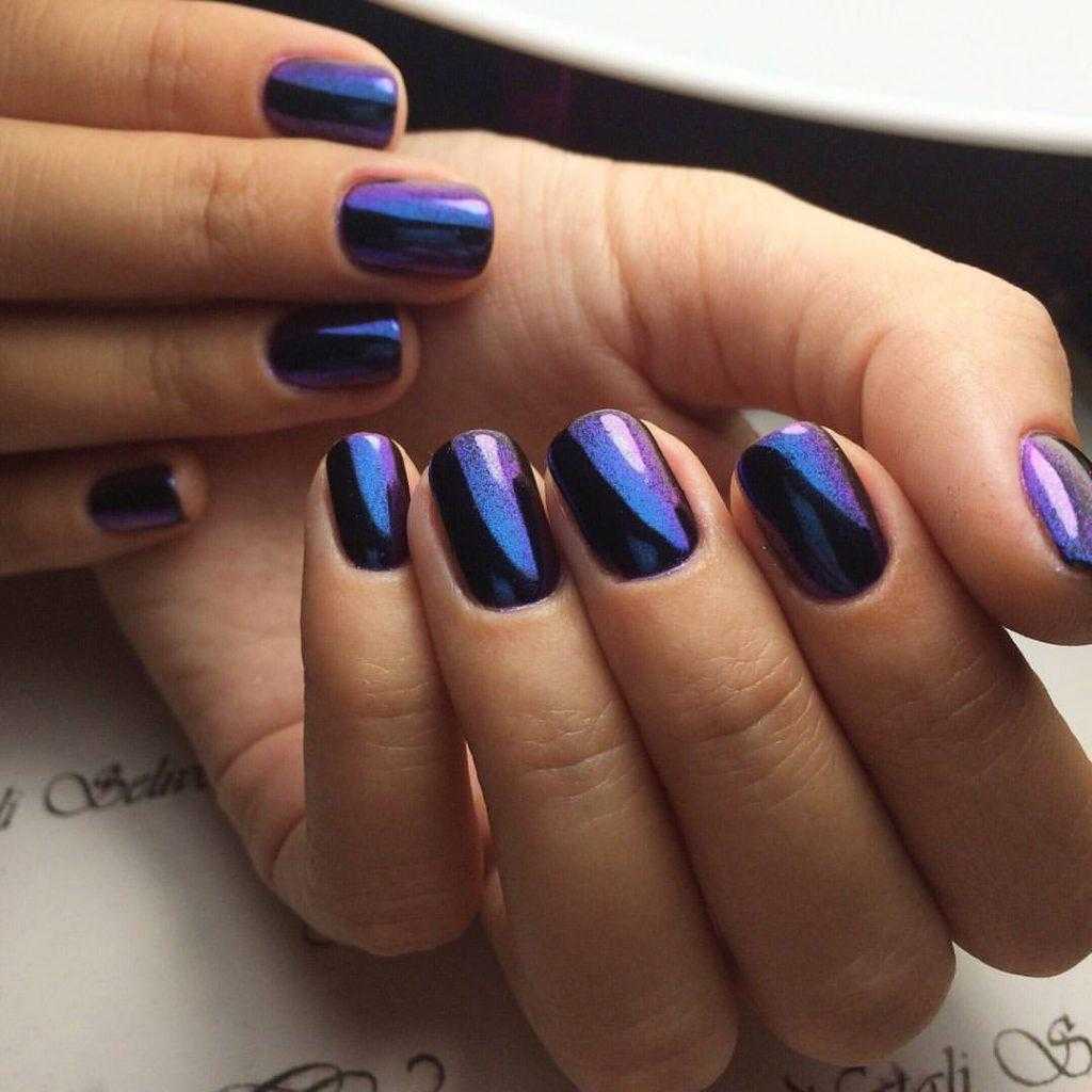 - На синих ногтях отпечатать фольгу, чтобы получилась удивительная переливающаяся текстура.