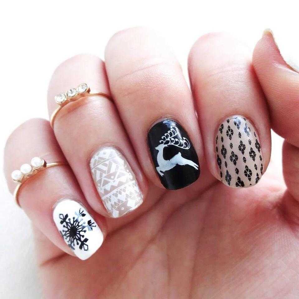 На наш взгляд, красный лак для ногтей очень хорошо сочетается с черно-белым тигровым каракулем. Такое сочетание цветов можно назвать классическим. Добавим, что красный цвет должен доминировать в этих отношениях, поскольку он напрямую ассоциируется с Рождеством.