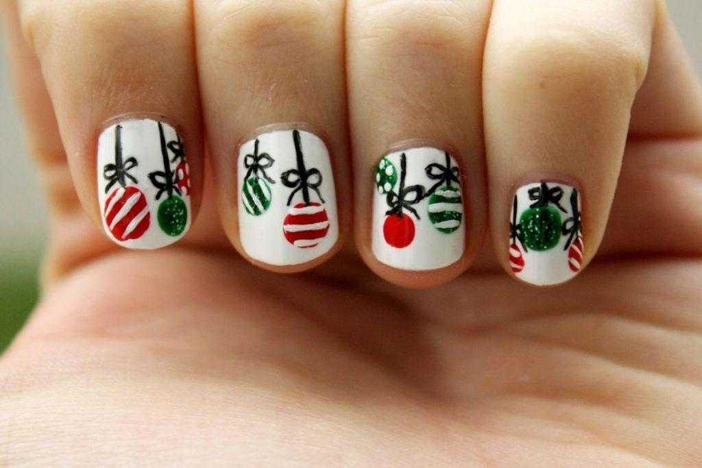 Новогодний дизайн с елочными игрушками понравится тем, кто хочет придать особое настроение волшебной зиме. Рисунок в виде елочных шаров достаточно легкий и лаконичный. Но игрушек в новогоднем дизайне не должно быть много, иначе обильное количество шариков способно сделать дизайн вычурным.