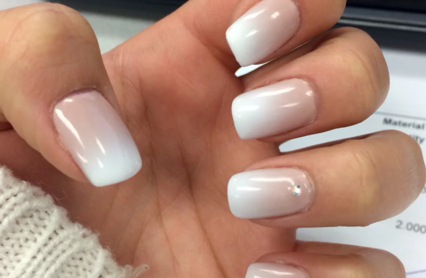 В этом варианте солирует белый тон лака. Фактически вы можете попросить делать растяжку от прозрачного к белому или даже от темно-серого. Любой вариант будет смотреться одинаково стильно и модно.