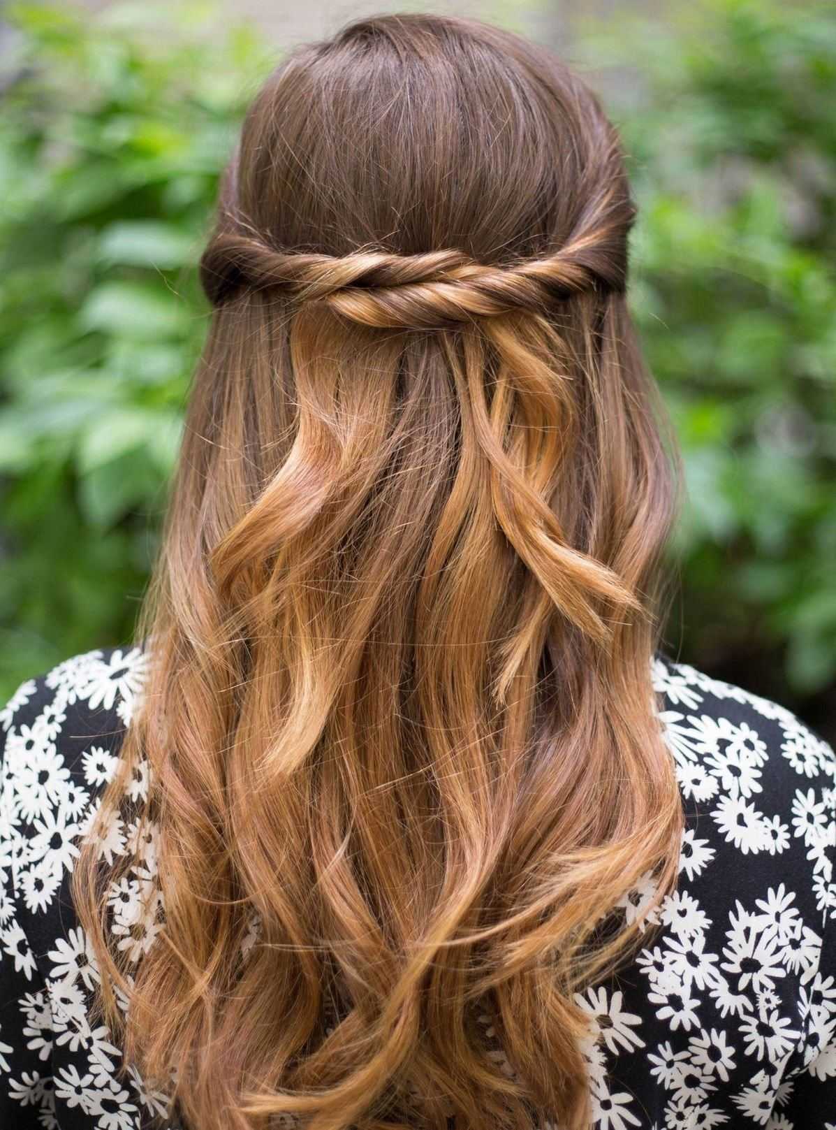 14. Венок из волос, выполненный из скрученных в жгут локонов, смотрится элегантно. Такие прически для офиса и вечеринки подойдут.