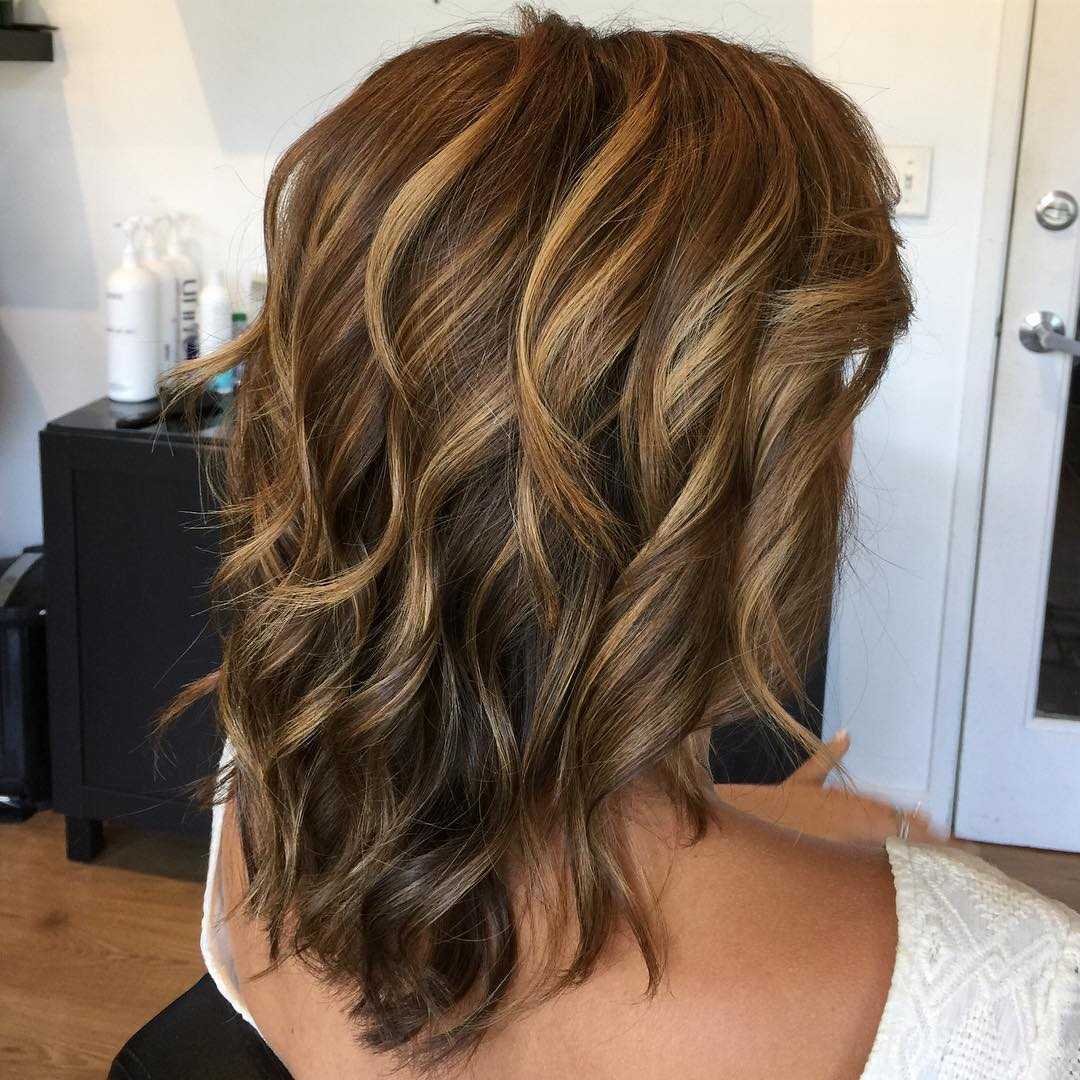 На волнистых волосах средней длины каскад смотрится не менее уместно. Гармонично подобранные переходы сформируют из непослушных, торчащих завитков классную причёску. Вероятно, её обладательнице даже не придётся укладывать локоны. Они сами лягут так, как нужно. Отсутствие чёлки в такой стрижке – это отличный способ зрительно вытянуть овал лица.