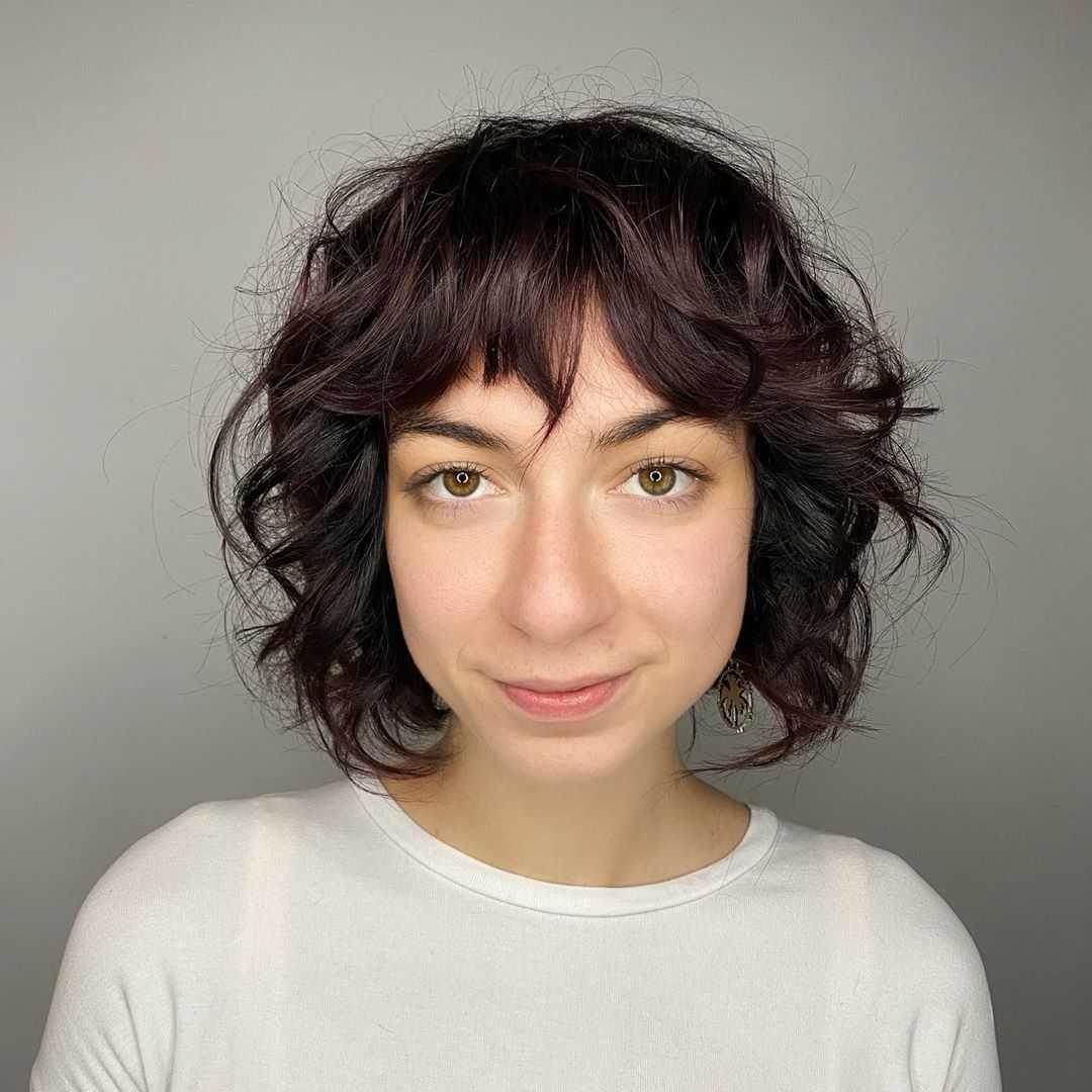 Кто сказал, что вьющиеся волосы и короткие челки не сочетаются? Создайте себе уникальную прическу с волосами длиной до плеч и короткой челкой. Это современный стиль, который значительно улучшит ваш внешний вид. Для достижения идеальной длины подстригайте вьющиеся волосы при высыхании.