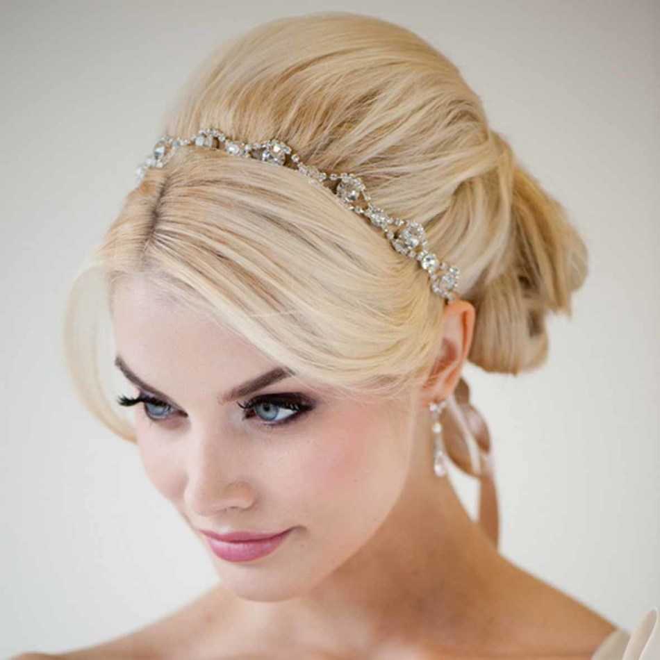 - Диадема, прикреплённая на затылке (к примеру, вокруг бабетты), придаёт образу изысканную невесомость.