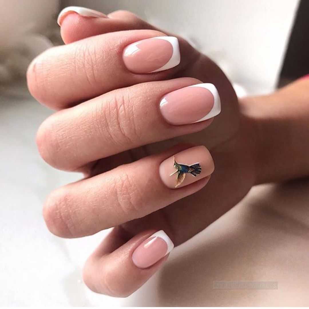 #5 Нежный маникюр с рисунком минимализм на короткие ногти 2020