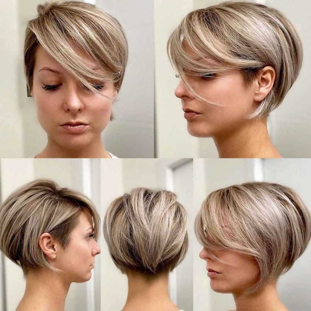 Существует несколько вариантов выполнения боб пикси. Стилисты создают прическу без челки или с челкой. Она может быть обычной, прямой, косой или имеющей асимметрию. Для смелых девушек делают короткий затылок, на котором выстригают красивый узор.