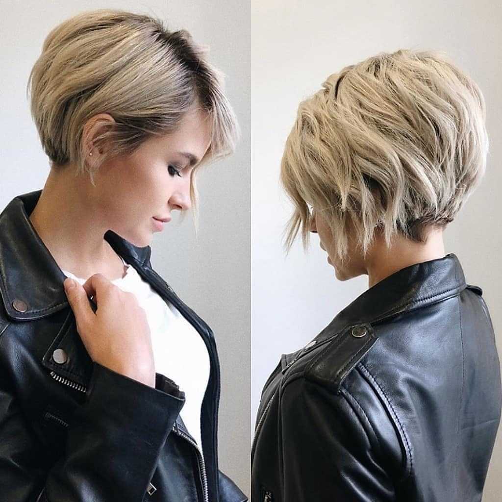 Пикси боб имеет характерные отличия – короткие волосы на затылке и объем на макушке и темени. Передним локонам оставляют желаемую длину, обычно она достигает мочки уха. Пряди возле лица стригут, используя технику градуировки.