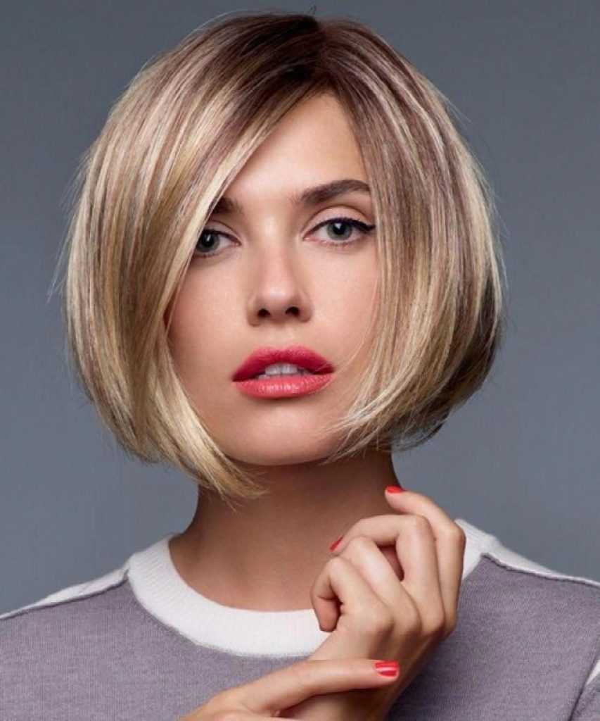 Круглое лицо легко узнать, так как черты лица мягкие, а ширина и длина лица примерно одинаковы. С такой формой лица удлиненный боб действительно может помочь немного обострить ваше черты лица.