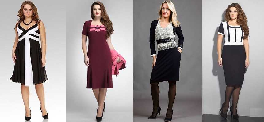 Визуально нивелировать диспропорции фигуры позволит «игра» с цветом. Контраст темного низа и светлого верха отлично справится с этой задачей. Абсолютные табу – заниженная талия, зауженный к низу подол. Грамотный выбор – вечерний образ с платьем «бэби-долл», прямого с поясом, корсетом, драпированным лифом.