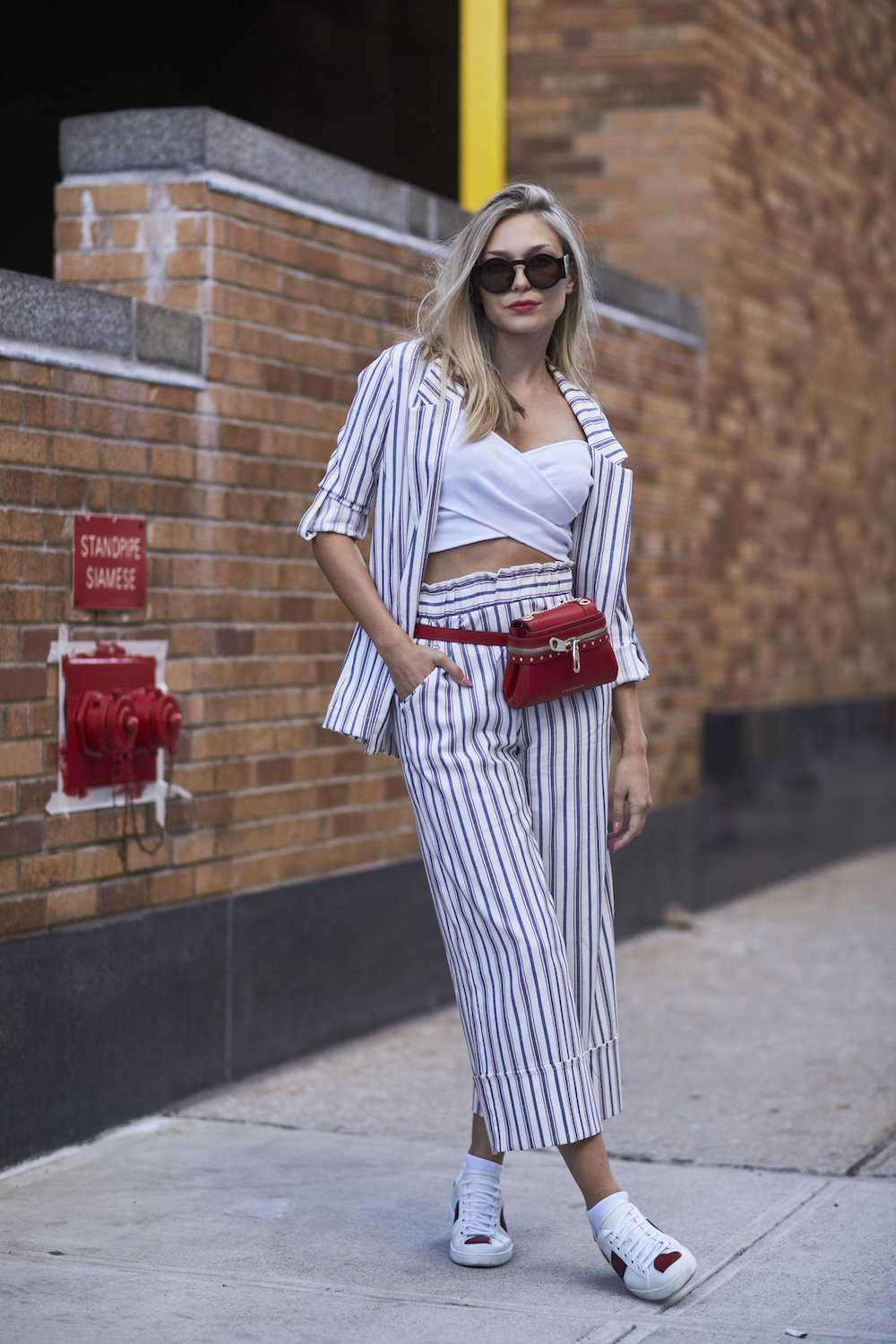 В новых луках от модных блогеров представлены полосатые аутфиты с узенькой, широкой, параллельной, вертикальной, горизонтальной, поперечной полоской.